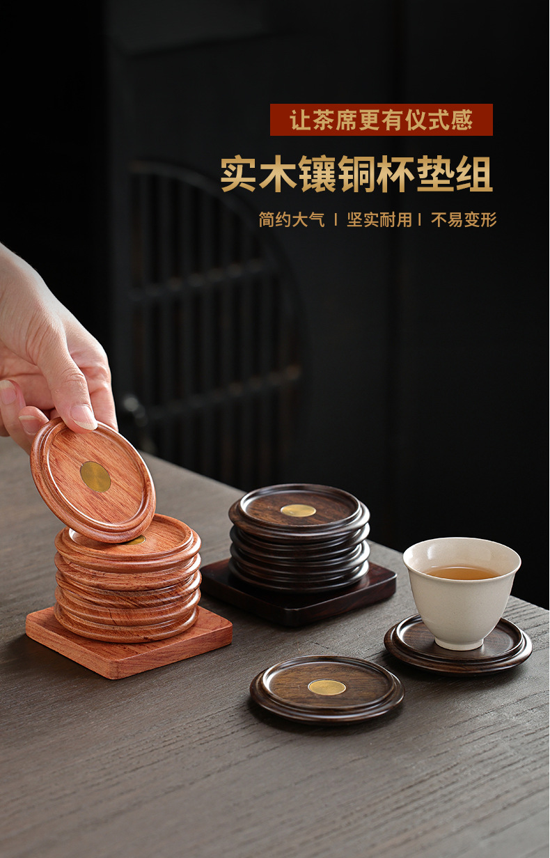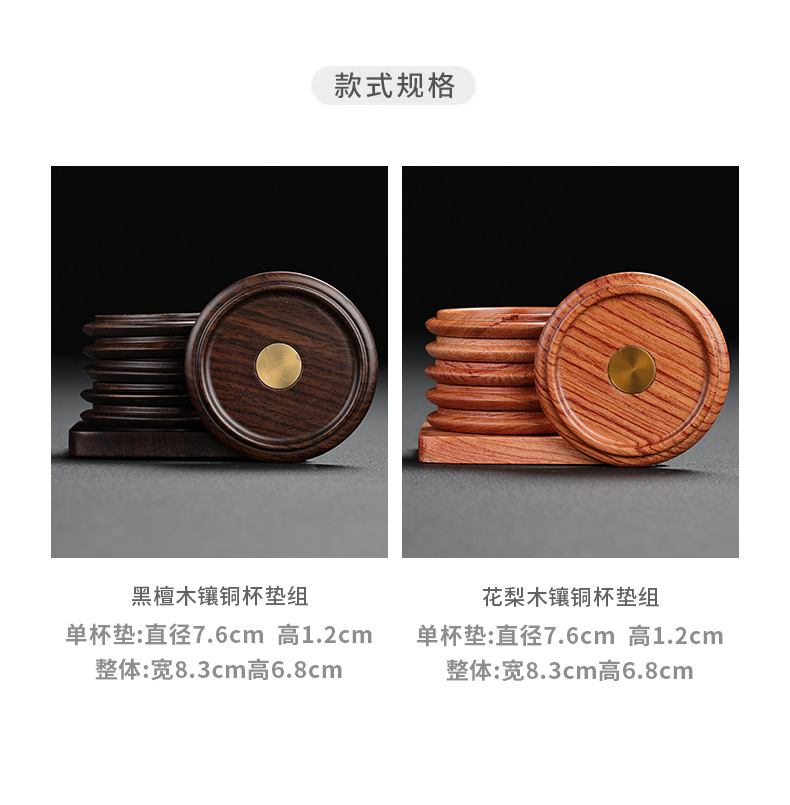 黒檀象嵌銅コースターセット,ローズウッド象嵌銅コースターセット