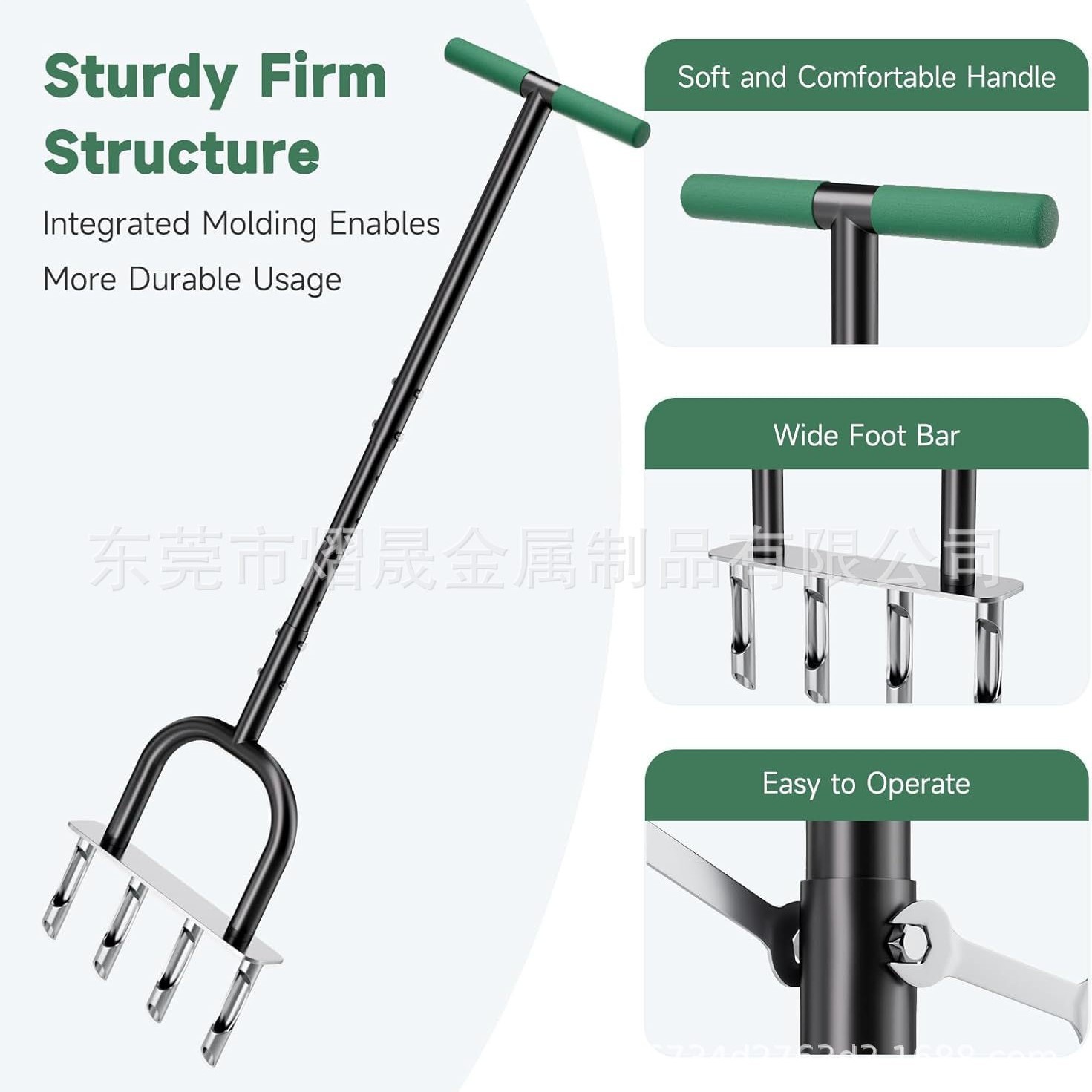 新款草坪松土器花园翻土器草地打孔器松土钉园林工具草坪曝气器