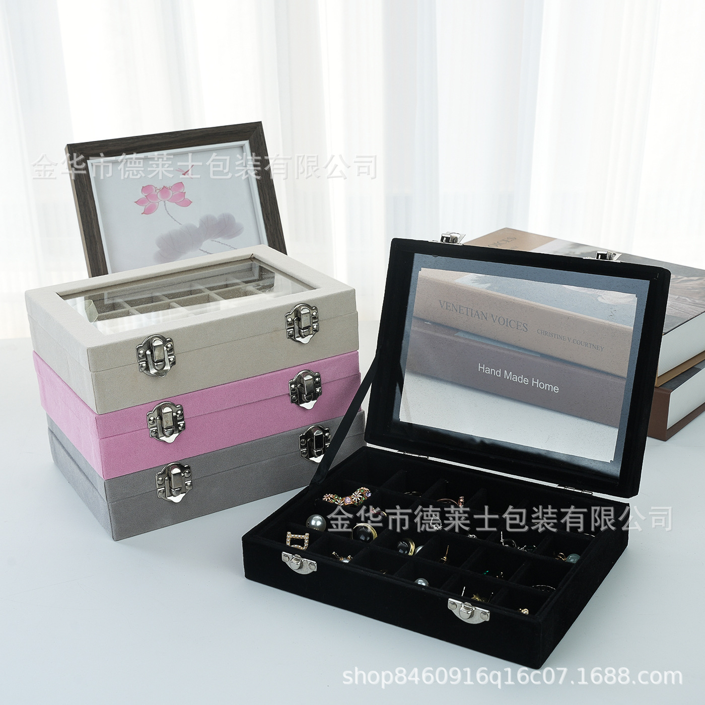 高級新作ガラスアクセサリー箱指輪イヤリングピアスブレスレットネックレスアクセサリー展示フランネルジュエリー収納ケース
