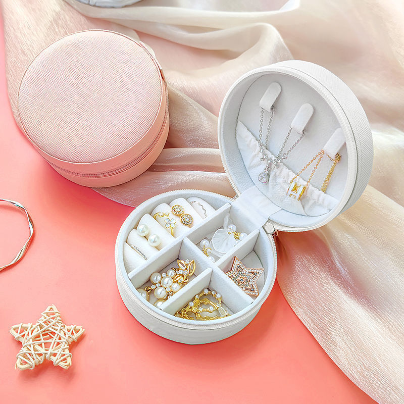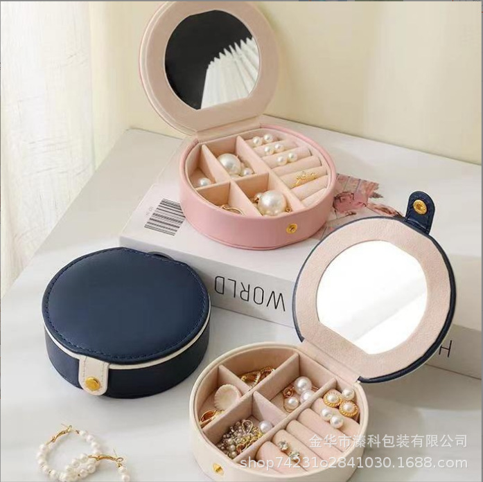 ポータブルジュエリーボックス円形抗酸化小型リングピアスジュエリーボックスジュエリー収納ボックス外出旅行