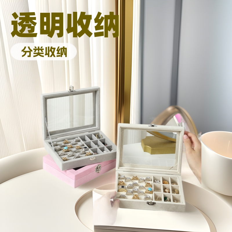 国境を越えて人気のある高級収納ジュエリーボックス、ベルベット生地の学生用デスクトップジュエリーボックス、指輪、ネックレス、イヤリング収納ボックス