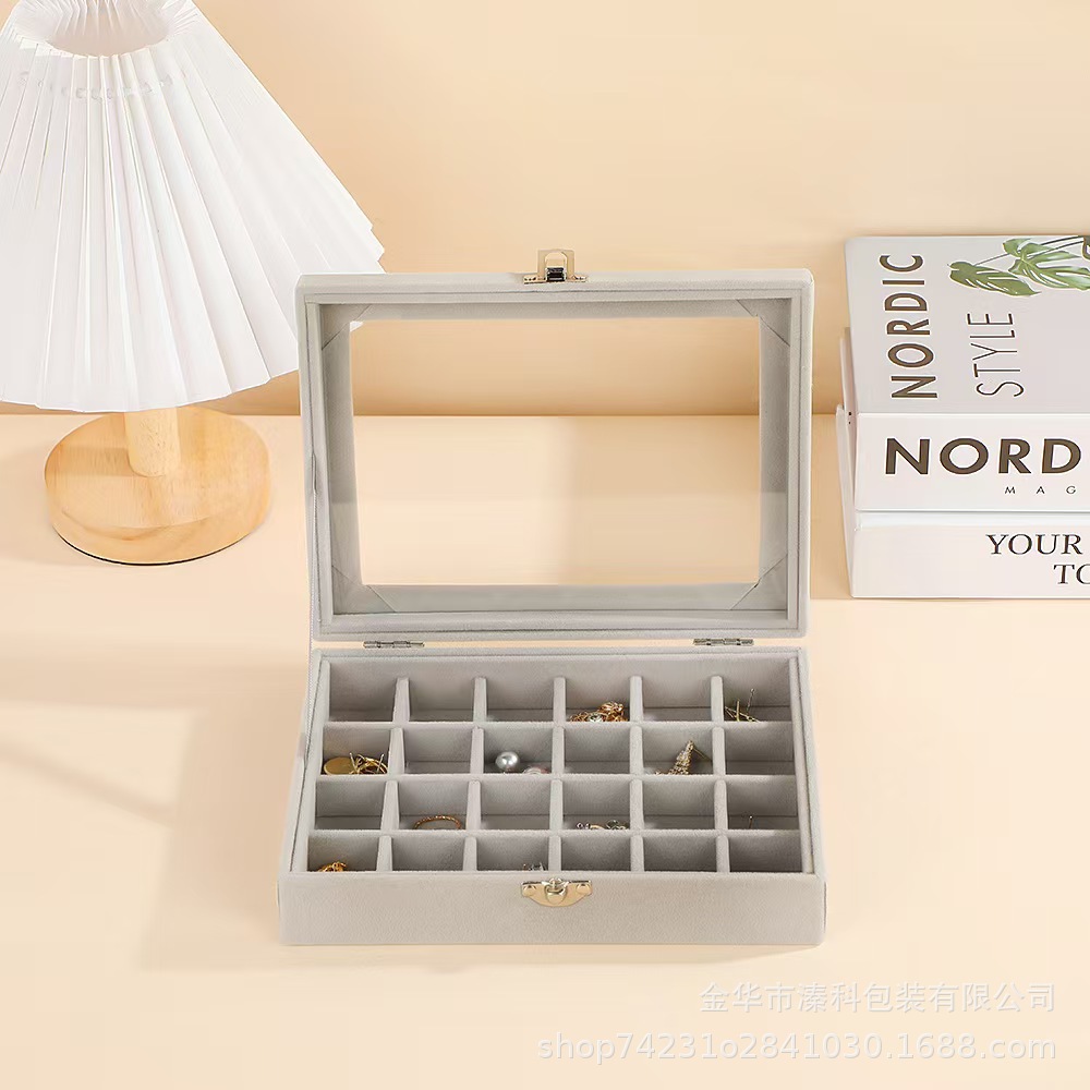 グレー 24 グリッド ジュエリー ボックス,ピンクの24グリッドジュエリーボックス,オフホワイトの24グリッドジュエリーボックス