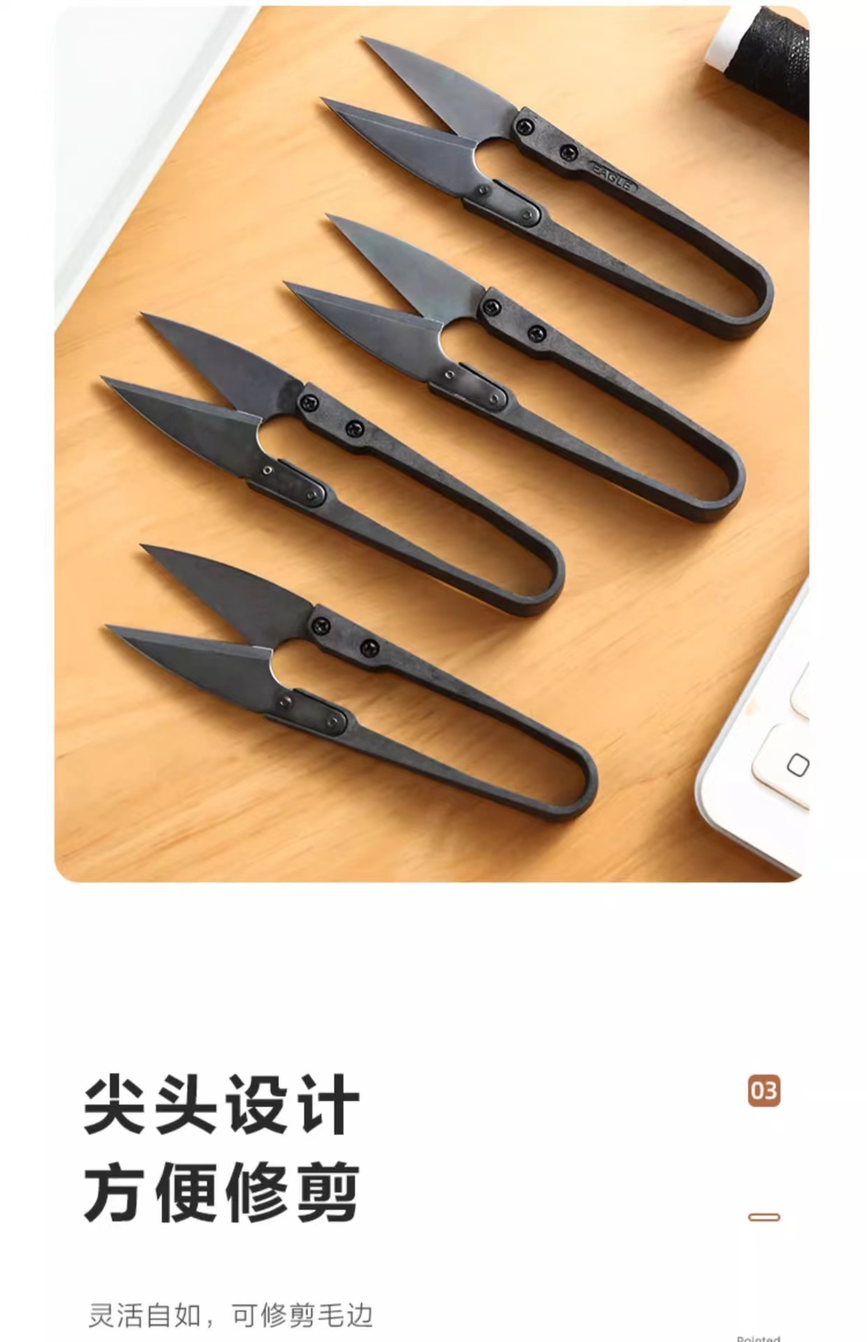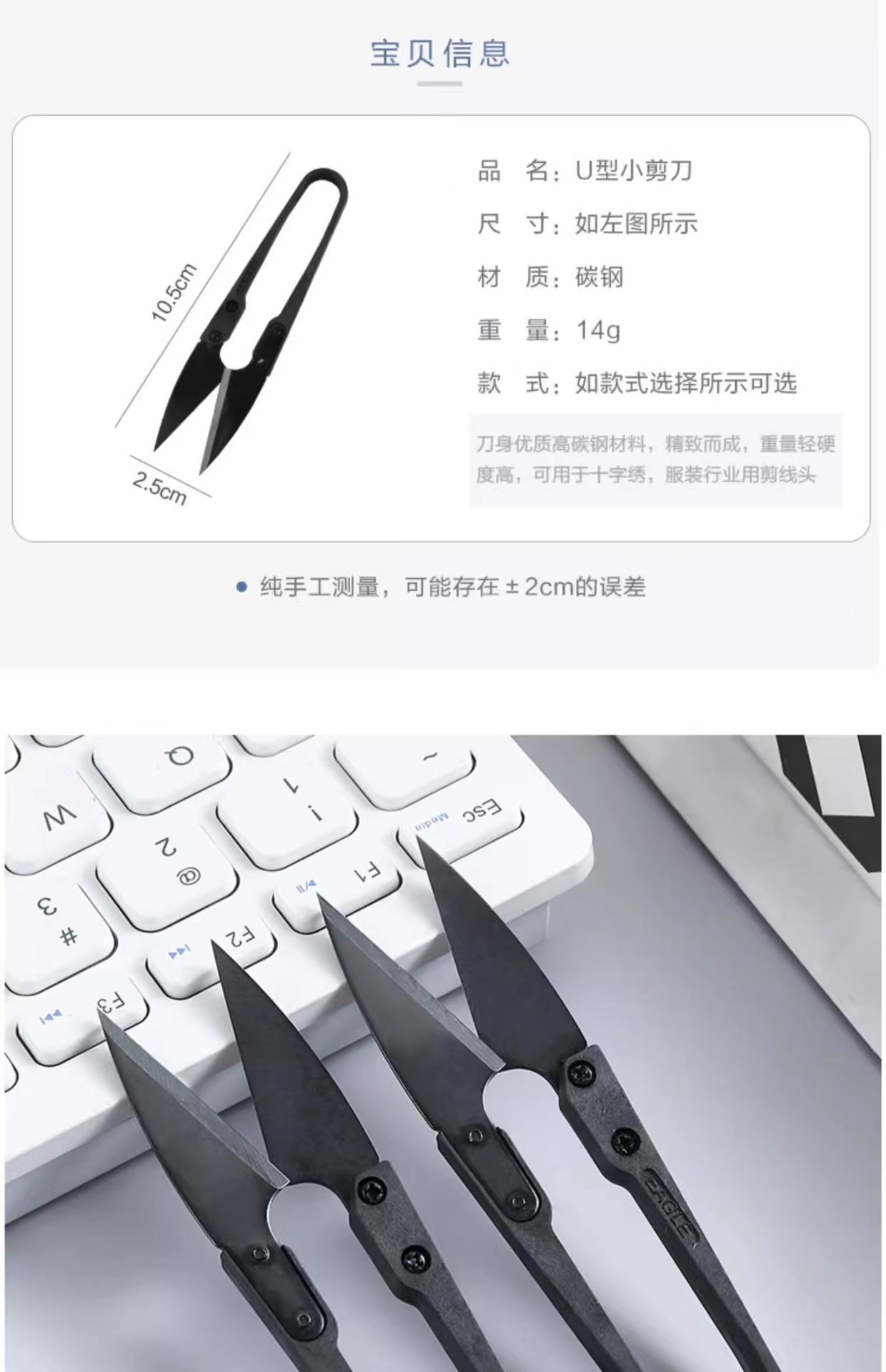 黑碳钢小纱剪修剪线头小剪刀十字绣U型剪弹簧剪刀不锈钢u型剪刀