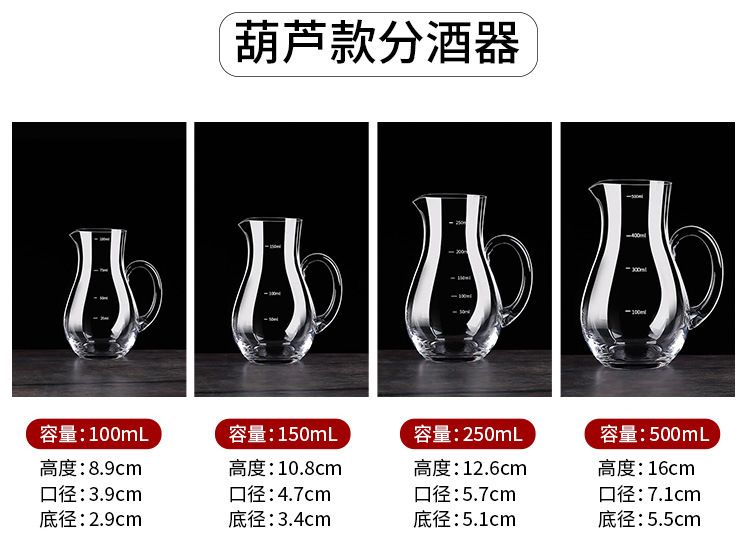 玻璃白酒分酒器家用加厚洋酒量酒壶水晶带刻度倒酒器 6个/件
