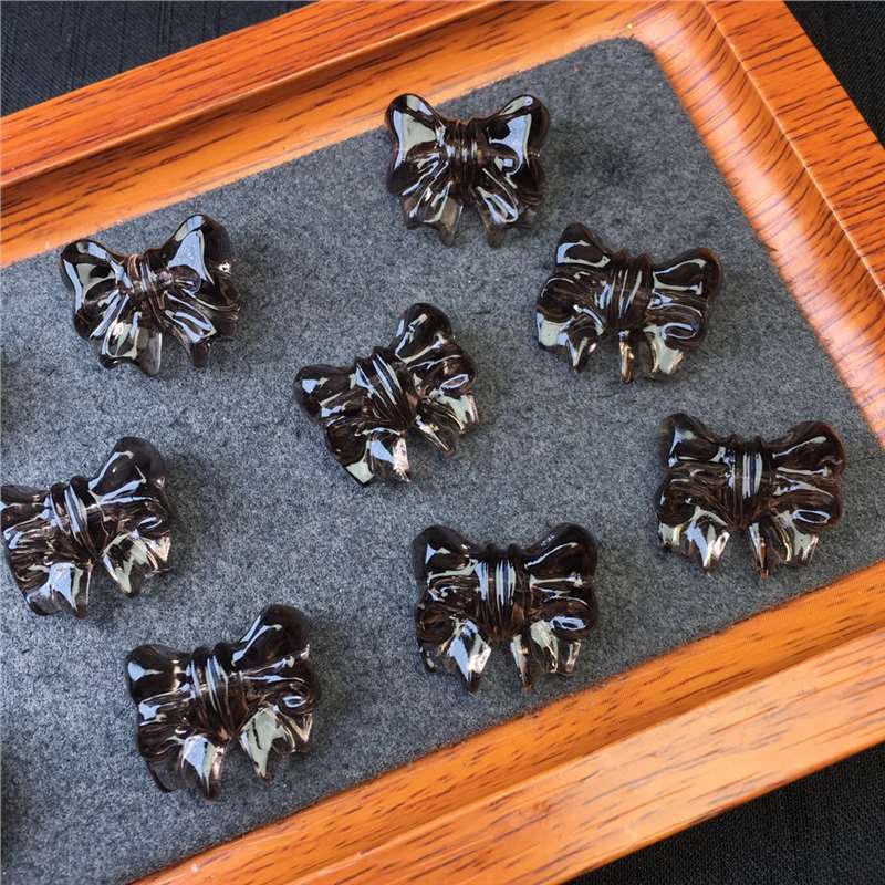 天然冰种黑曜石冰耀石蝴蝶结横通孔雕刻件 手串项链串饰配件