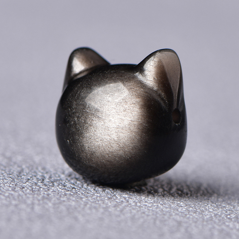 天然银曜石无脸猫DIY配件银曜无脸猫横孔配件银曜圆脸猫小雕刻件