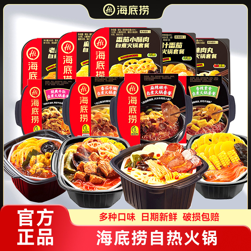 Haidilao 自己加熱鍋、自家調理、スパイシーで柔らかい牛肉、牛タン、トマト、牛ブリスケット、ベジタリアン、便利なインスタント食品