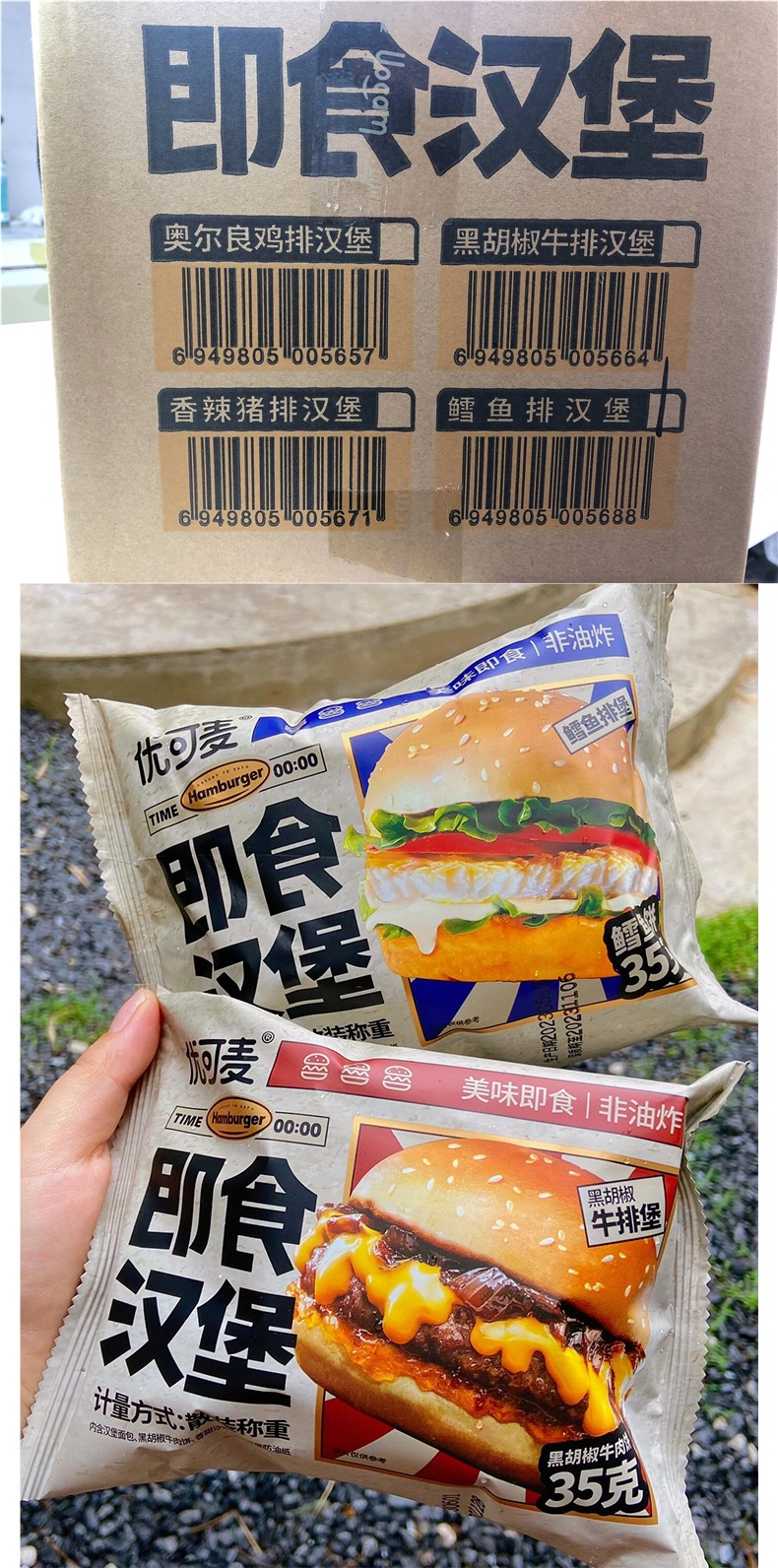 すぐに食べられるハンバーガーパンとミートパティ、朝食の全箱、怠け者のためのインスタントスナック、夜食、スナック食品