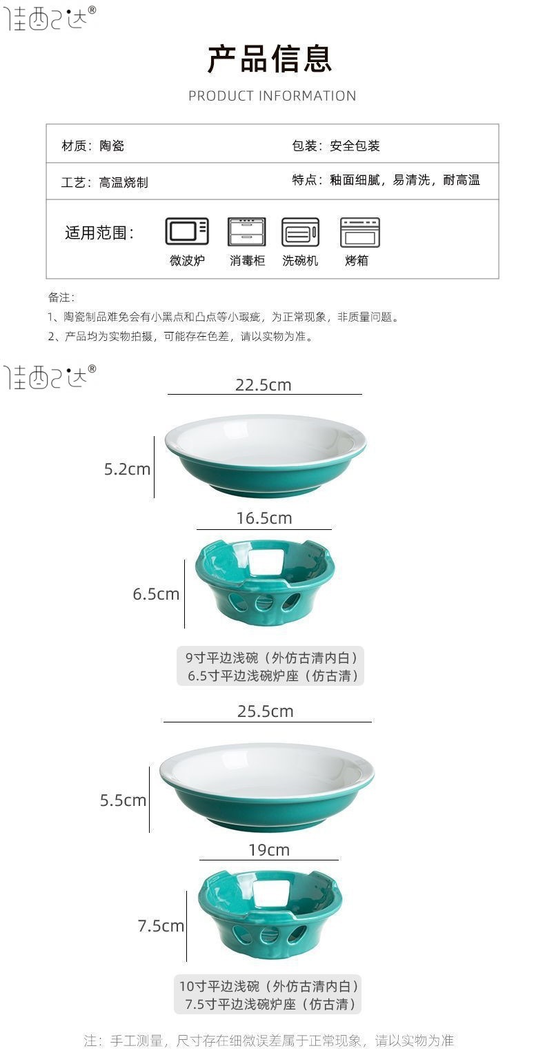 加熱保温食器中国式皿スープ皿台座ろうそく加熱私室食器特色料理皿乾燥鍋その他