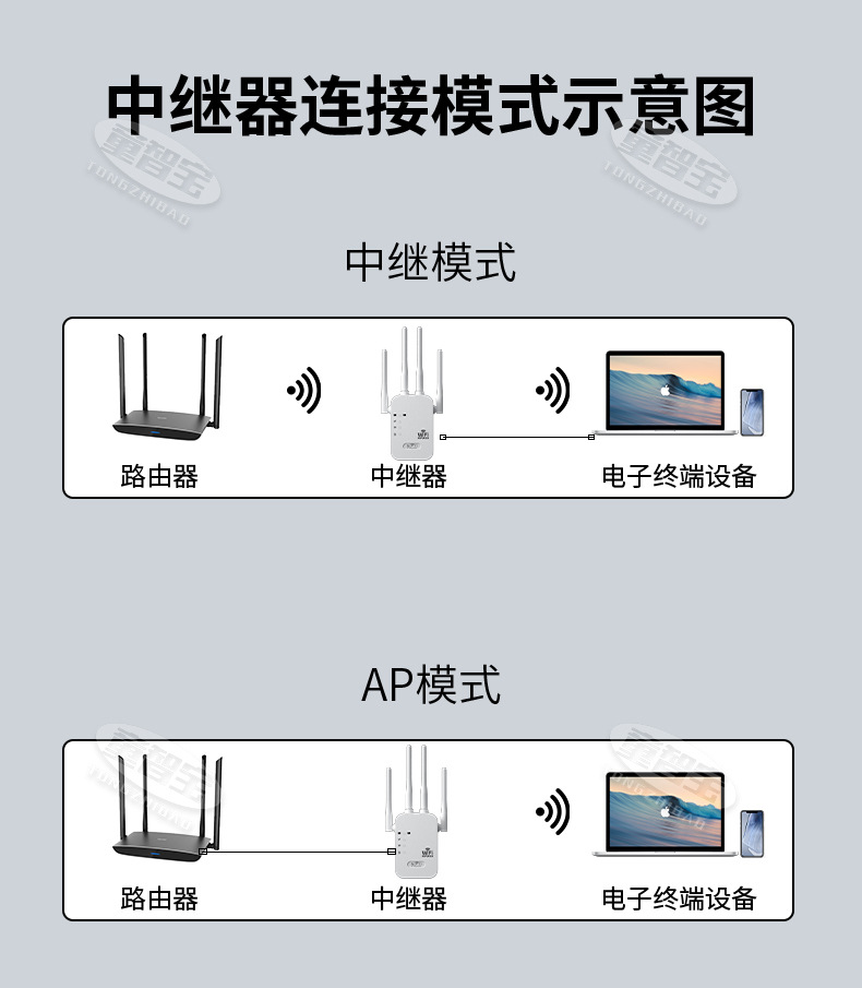 1200M双频增强中继器 无线WiFi信号放大器2.4 & 5.8G大功率AP路由