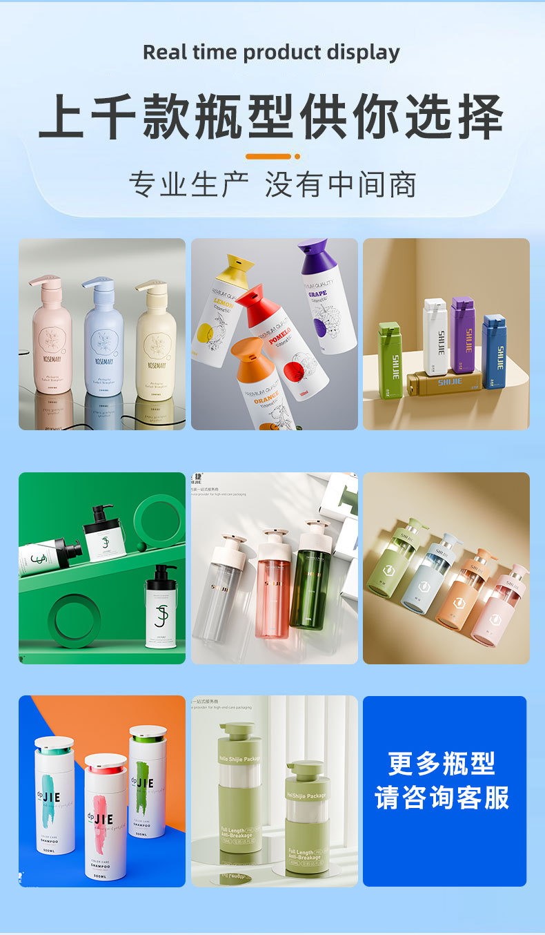 现货350ml圆底洗发水瓶分装500ml按压沐浴油瓶塑料洗护沐浴露瓶子