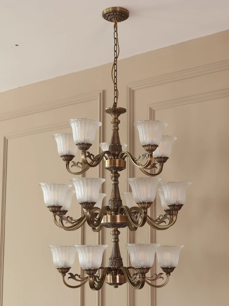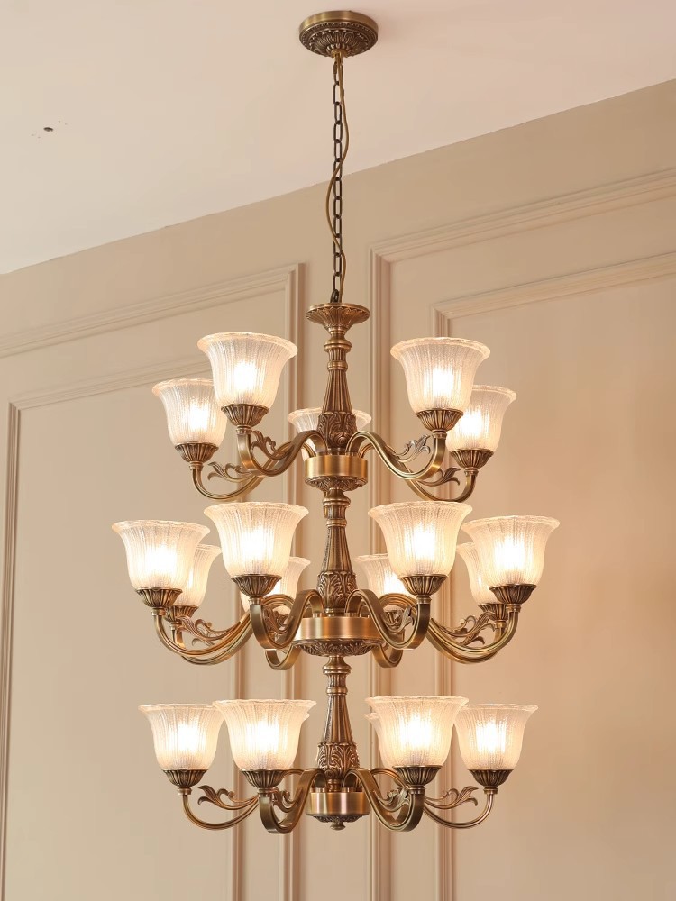 レトロな全銅アメリカ式別荘は高い複式ビルの階段の明かりの二階の三階の4階の高級なフランスの照明器具を選びます。