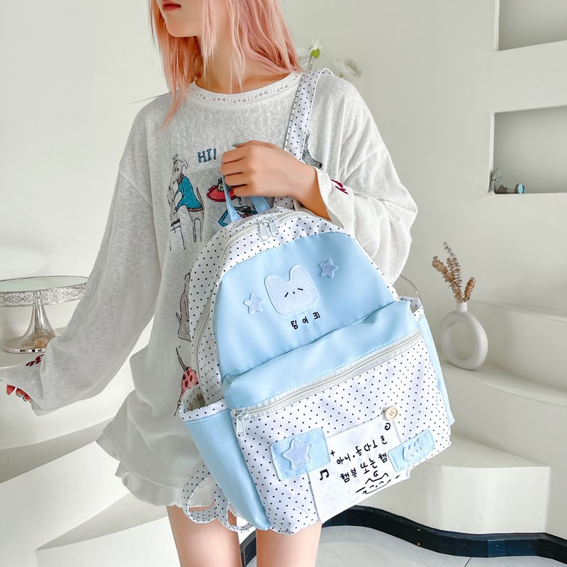 新款休闲韩系校园风波点双肩包甜美少女外出百搭背包上课通勤书包