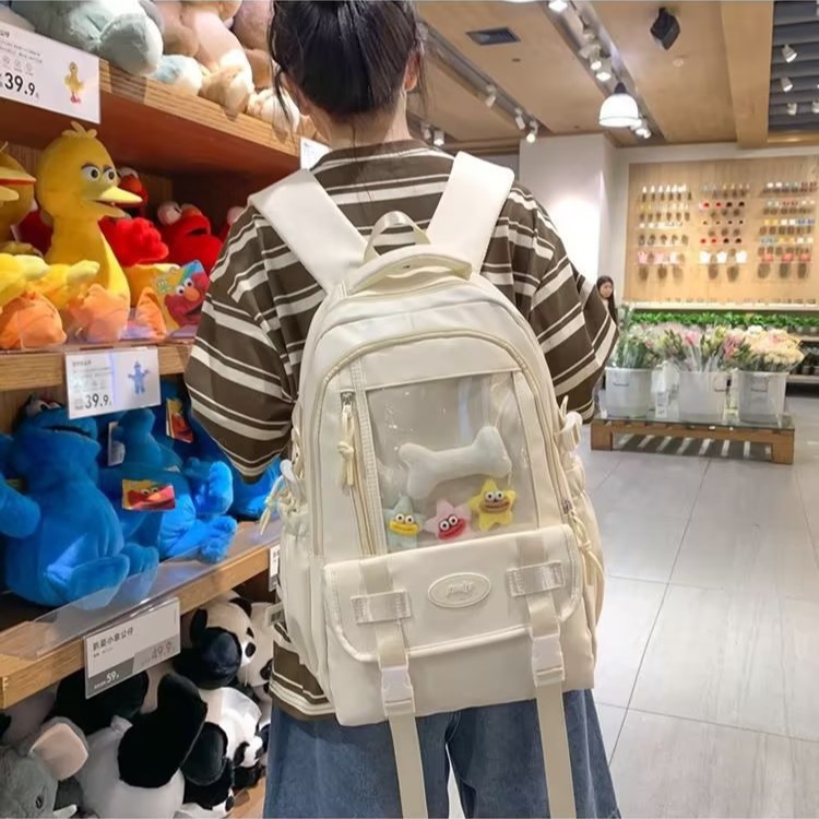 日系insかばん女子キャンパス百合かわいい高颜値ランドセル大容量バー透明バックパック痛包