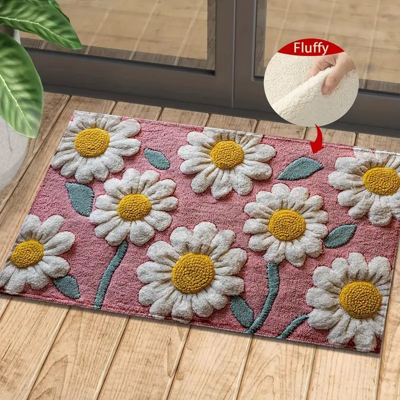跨境3D花卉ins风亚马逊temu浴室地垫水晶绒地垫耐脏易打理防滑垫