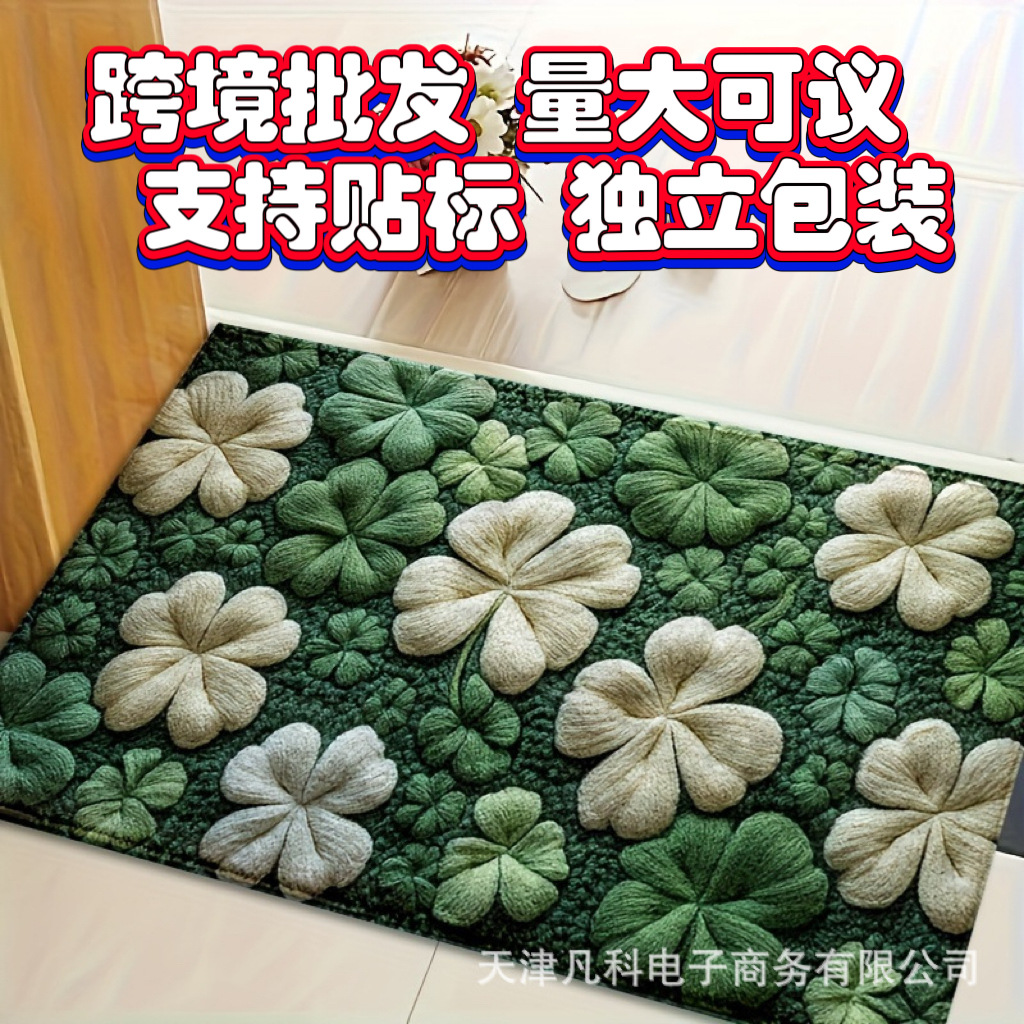 跨境temu热销花卉天鹅绒地垫入户玄关耐脏耐磨易打理地垫现货批发