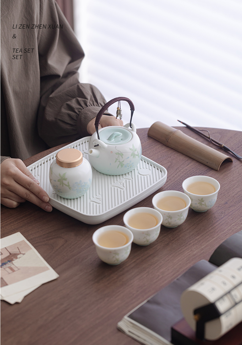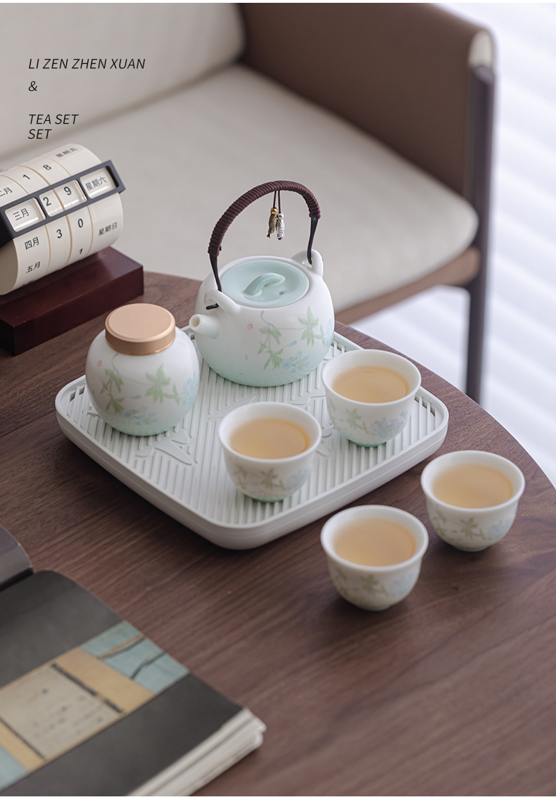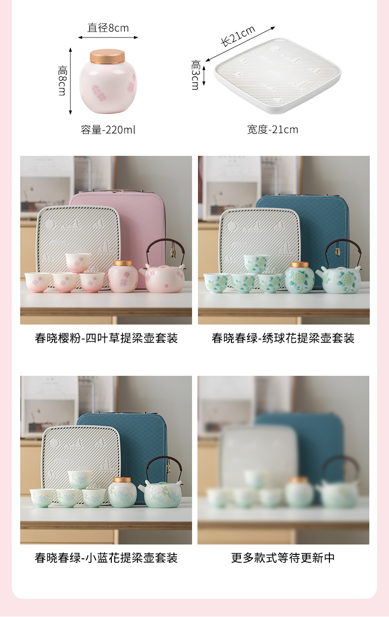 ピンク四つ葉のクローバーティーポットセット【レザーバッグ】,春緑あじさいポットセット【レザーバッグ】,Qianqing-小さな青い花のティーポットセット[レザーバッグ]