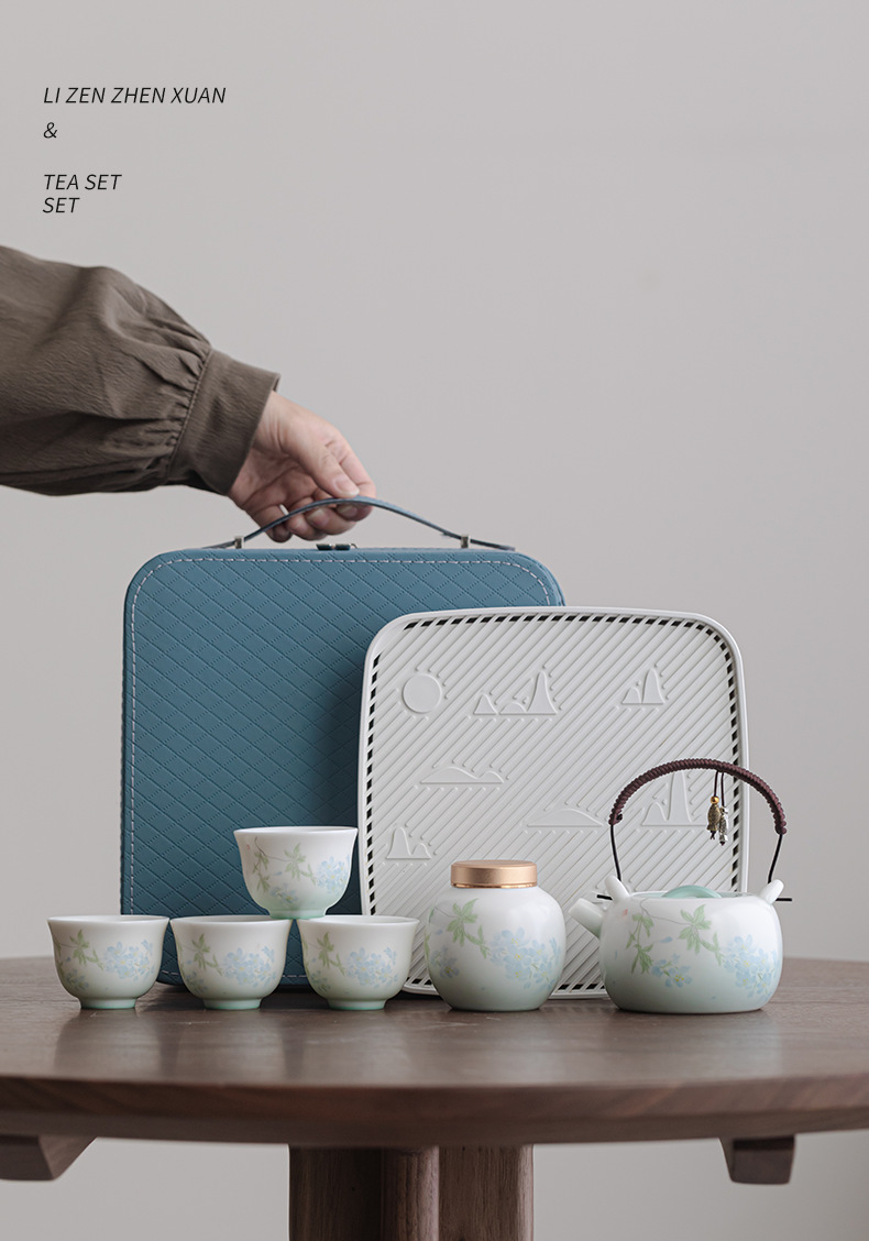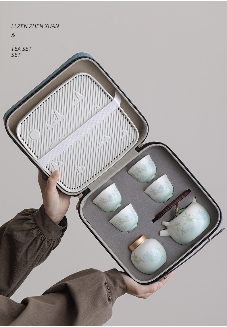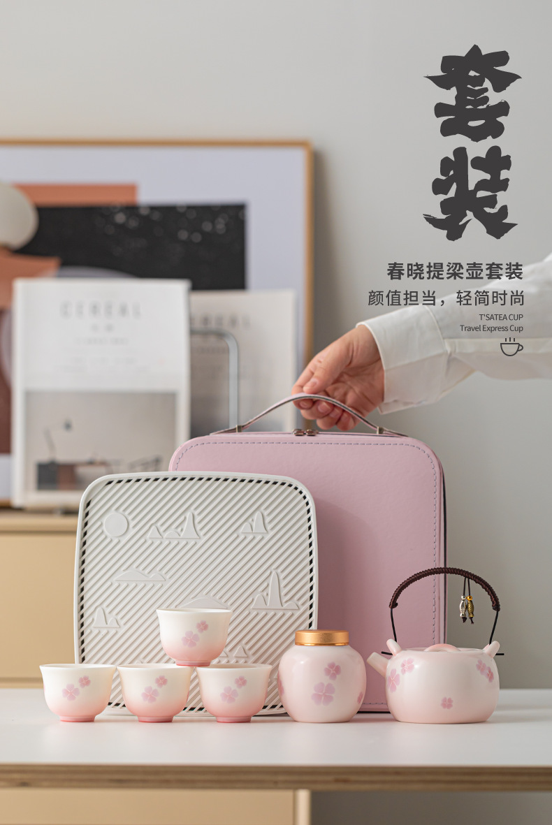 トラベルティーセット小型セットポータブル屋外セラミックティーカップホームシンプルカンフーティーポットお土産ギフト