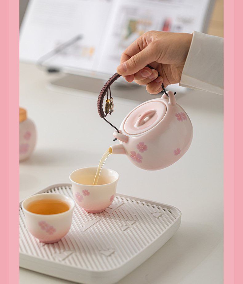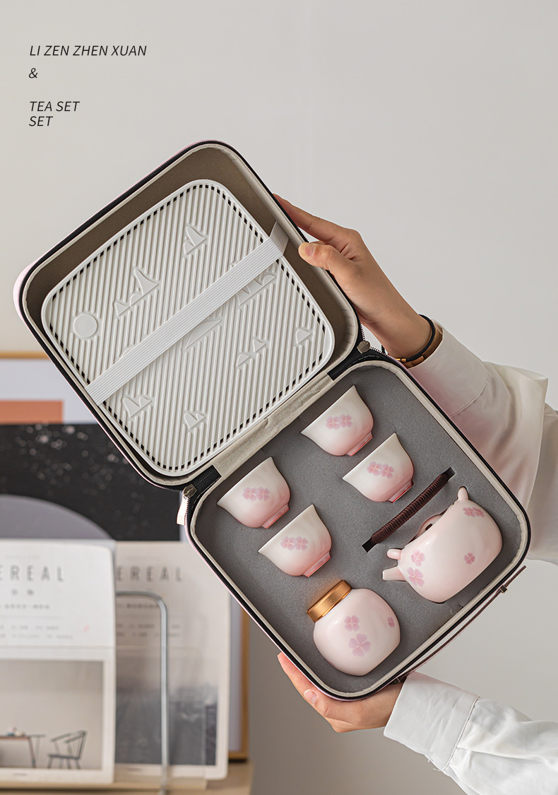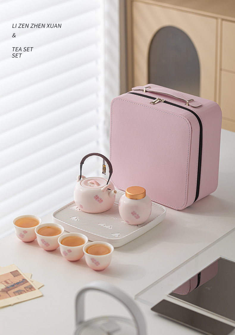 ピンクつまみ旅行茶道具セットアウトドア旅行出張カンフーカップ携帯収納陶磁器お土産