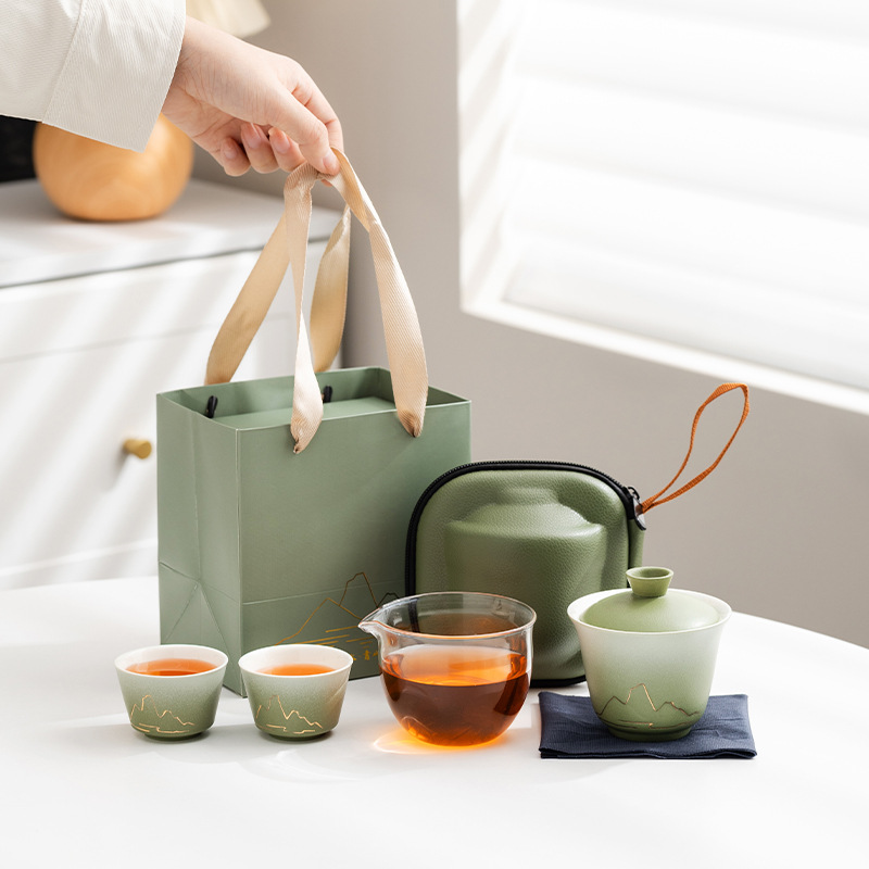 远山旅行茶具便携式收纳套装功夫泡茶盖碗快客杯一人户外露营喝茶