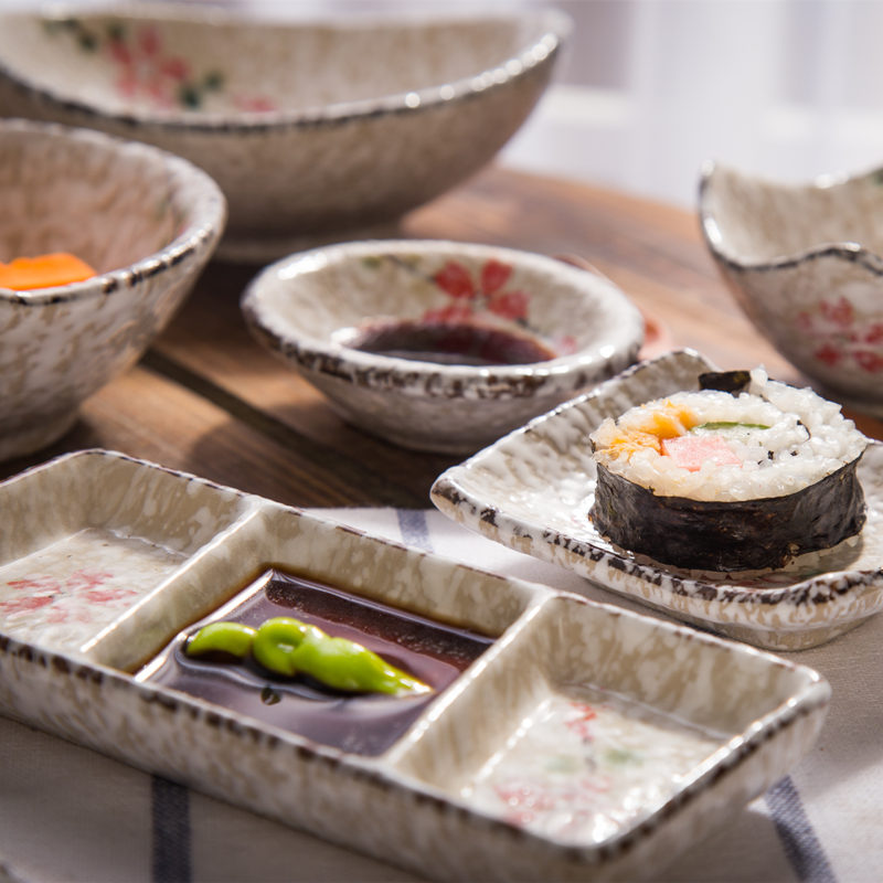 小皿創意和風調味料皿陶磁器調味料皿厨房食器三分格酢皿調味料皿醤油皿