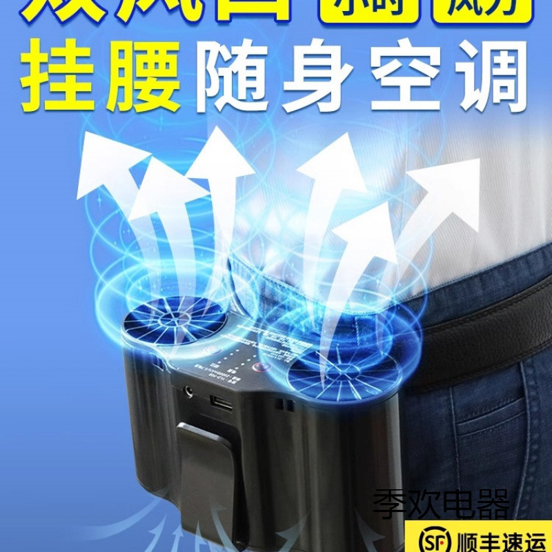 腰に掛けた扇風機、持ち運びに便利な小型屋外工事現場作業用腰ベルト、腰掛け式冷凍冷却加工品
