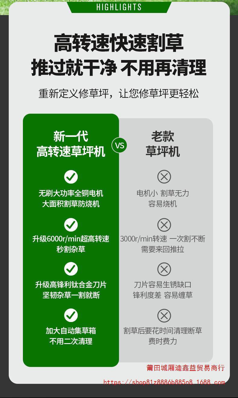 電動芝刈り機手押し式家庭用芝刈り機芝生剪定機ハイパワーリチウム電池芝生芝刈り機