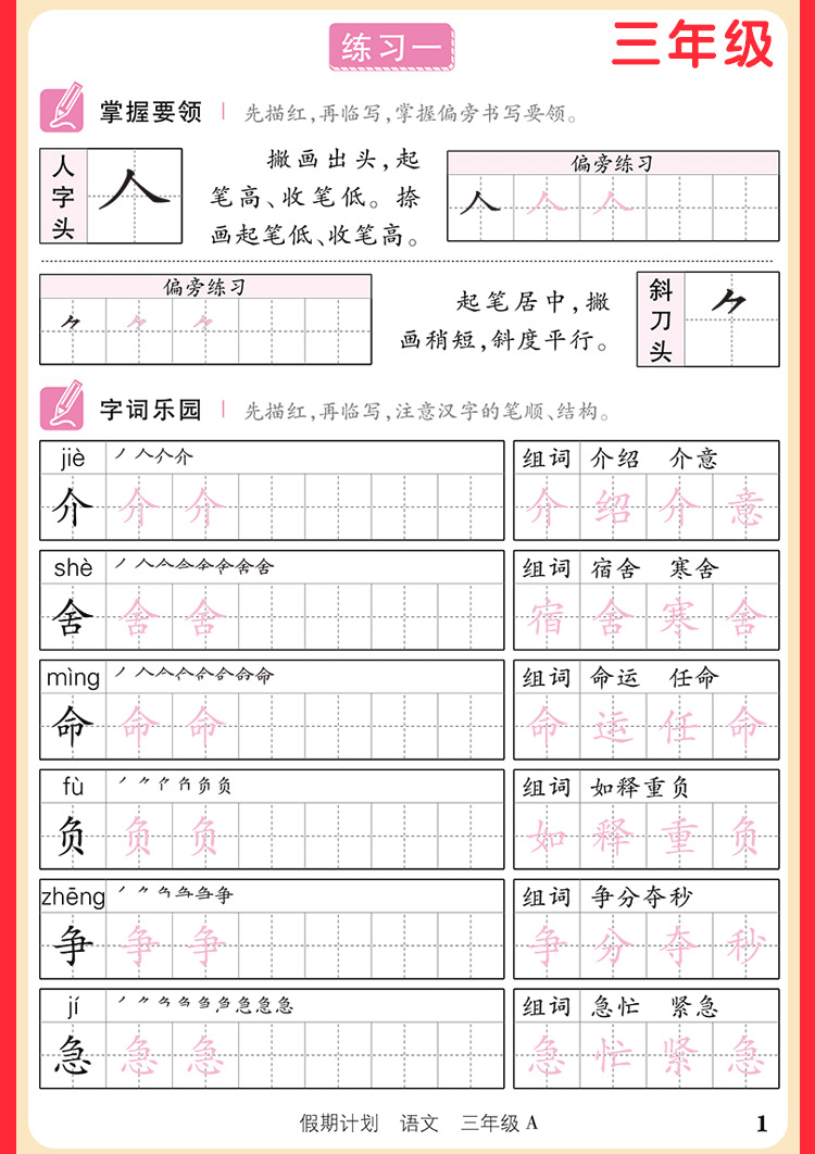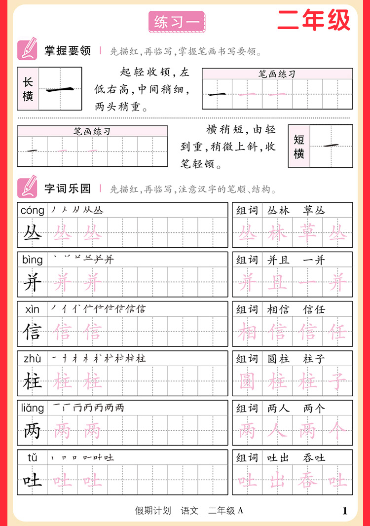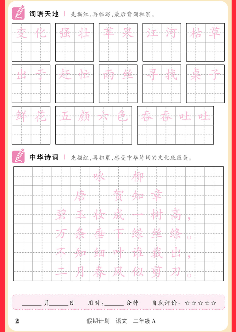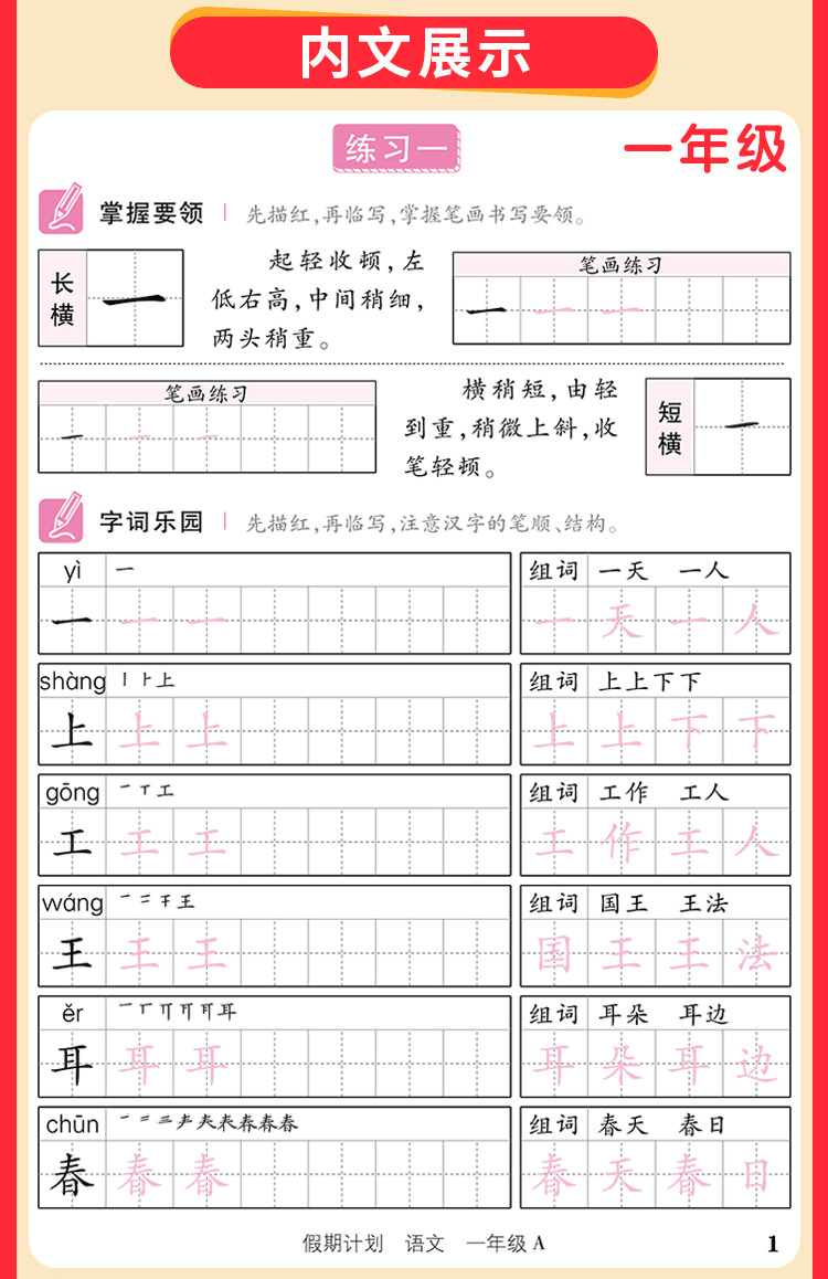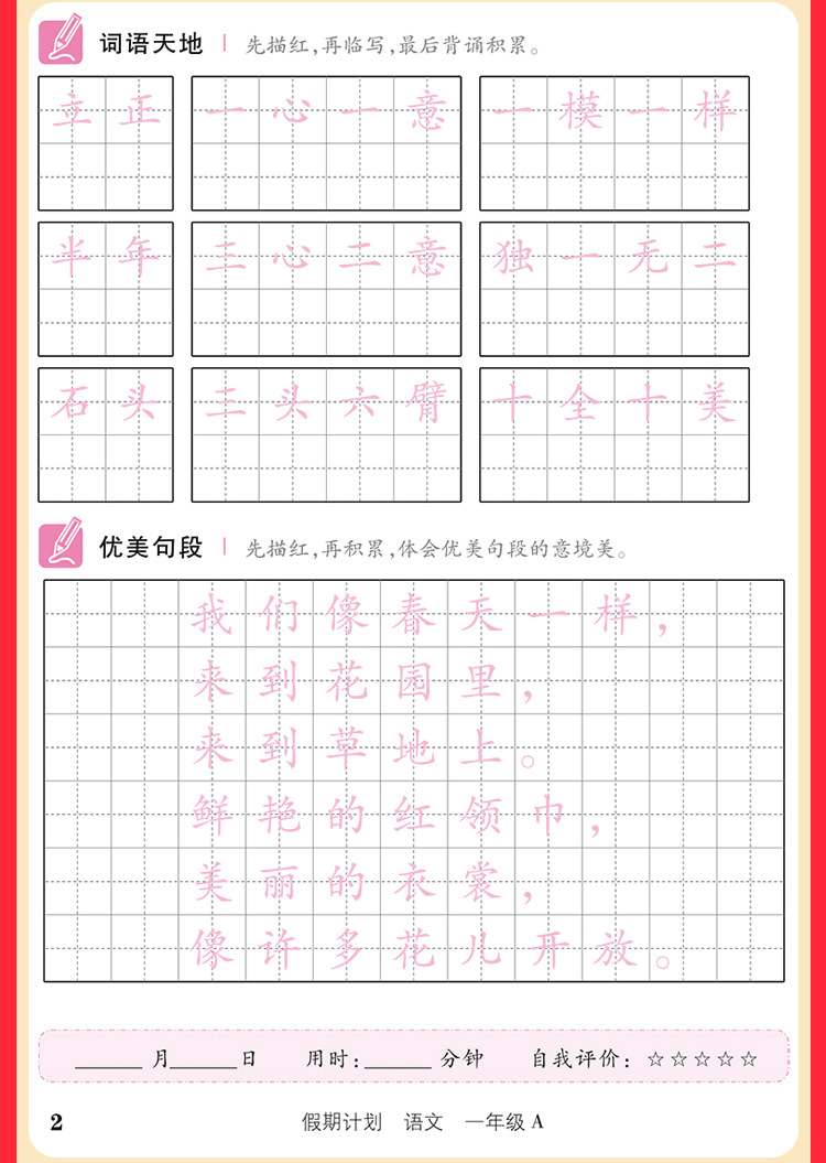 2025新版休暇計画夏休み練習字帖一年生練習字帖国語同期字課練習書