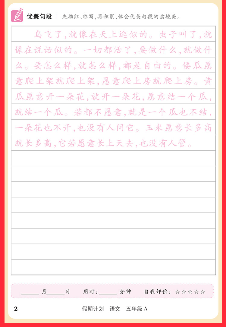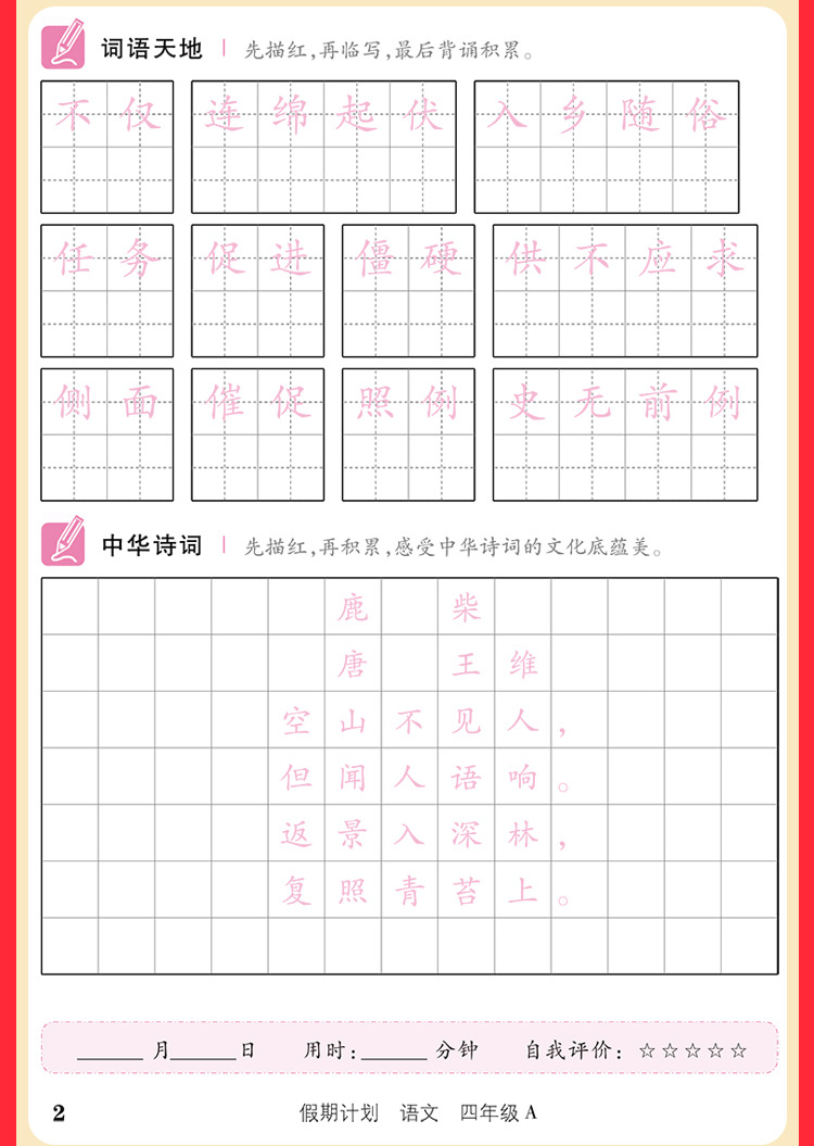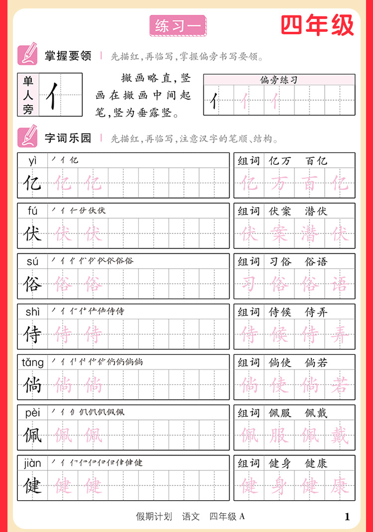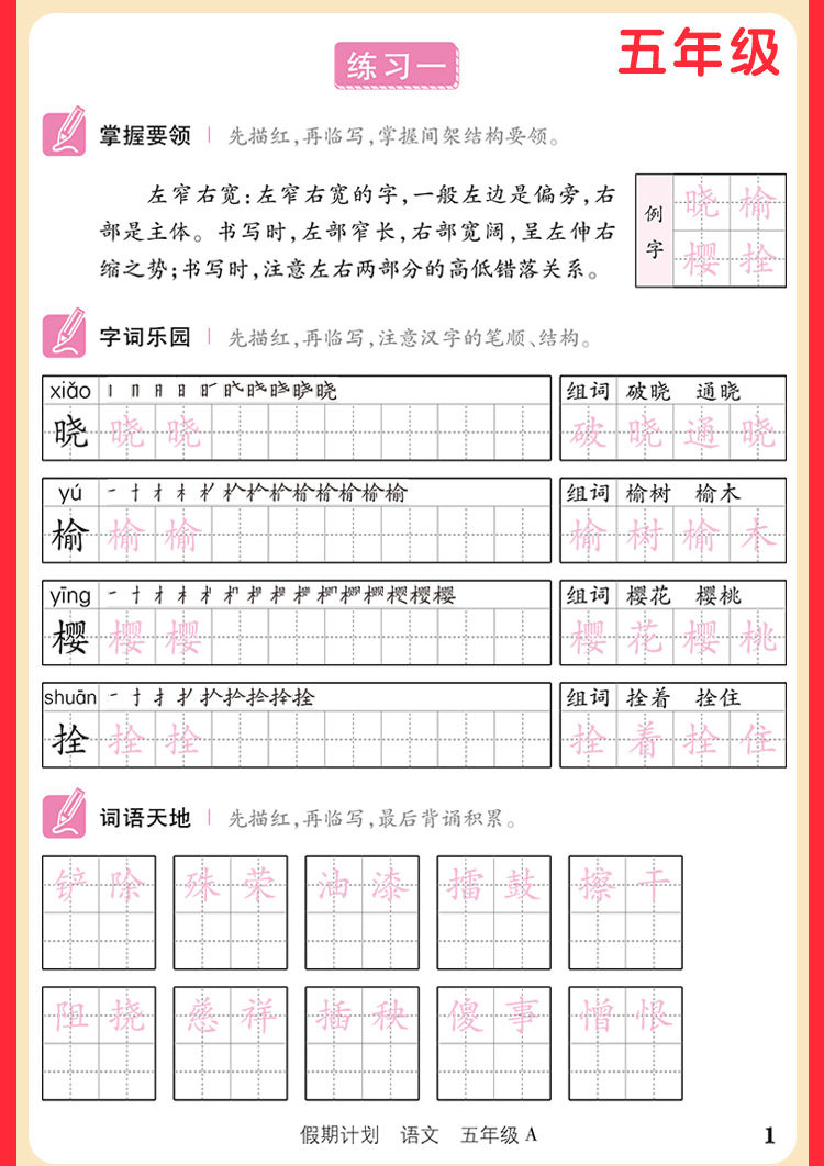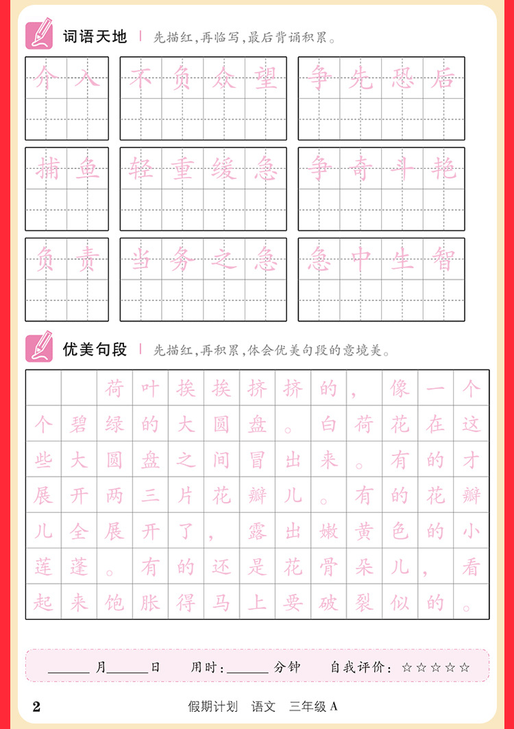 2025新版休暇計画夏休み練習字帖一年生練習字帖国語同期字課練習書