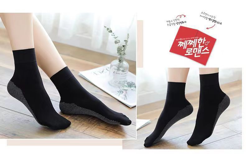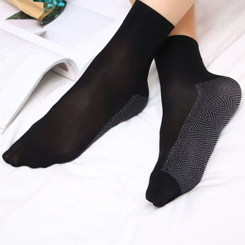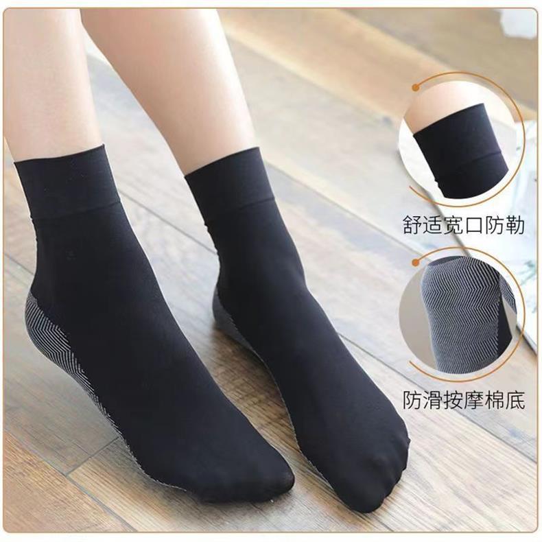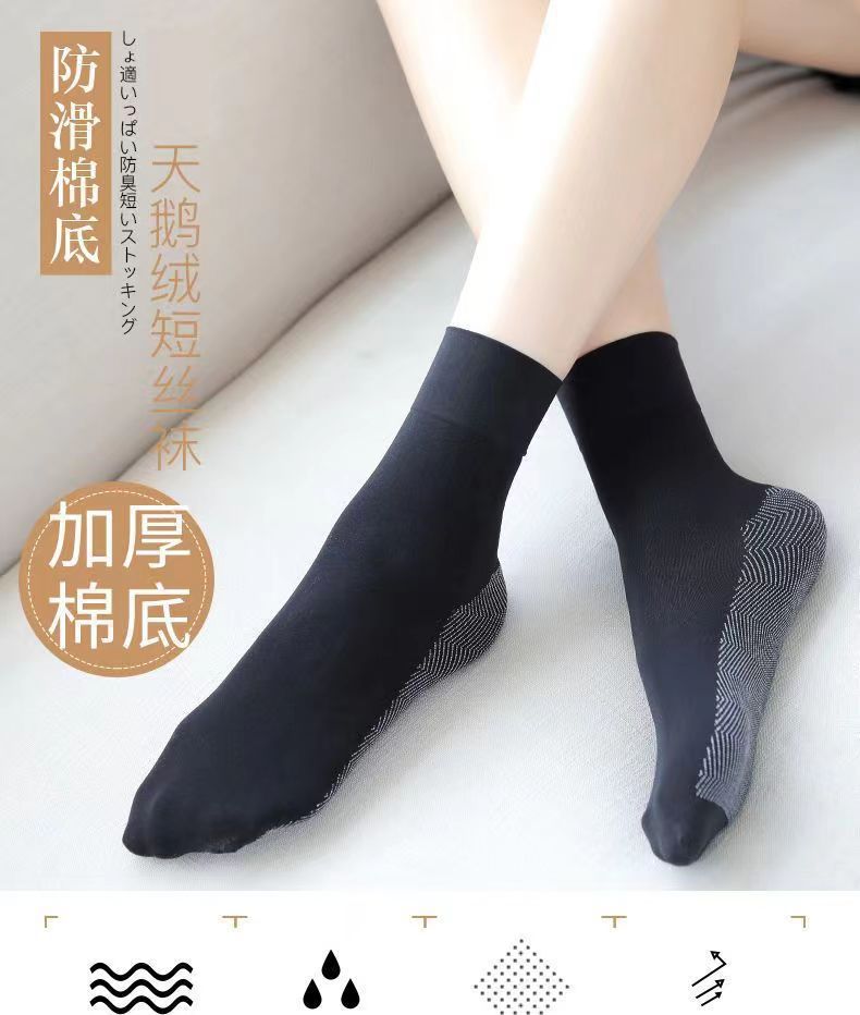 天鹅绒松口丝袜棉底加厚中筒女士袜子丝袜女透气足底防滑短丝袜