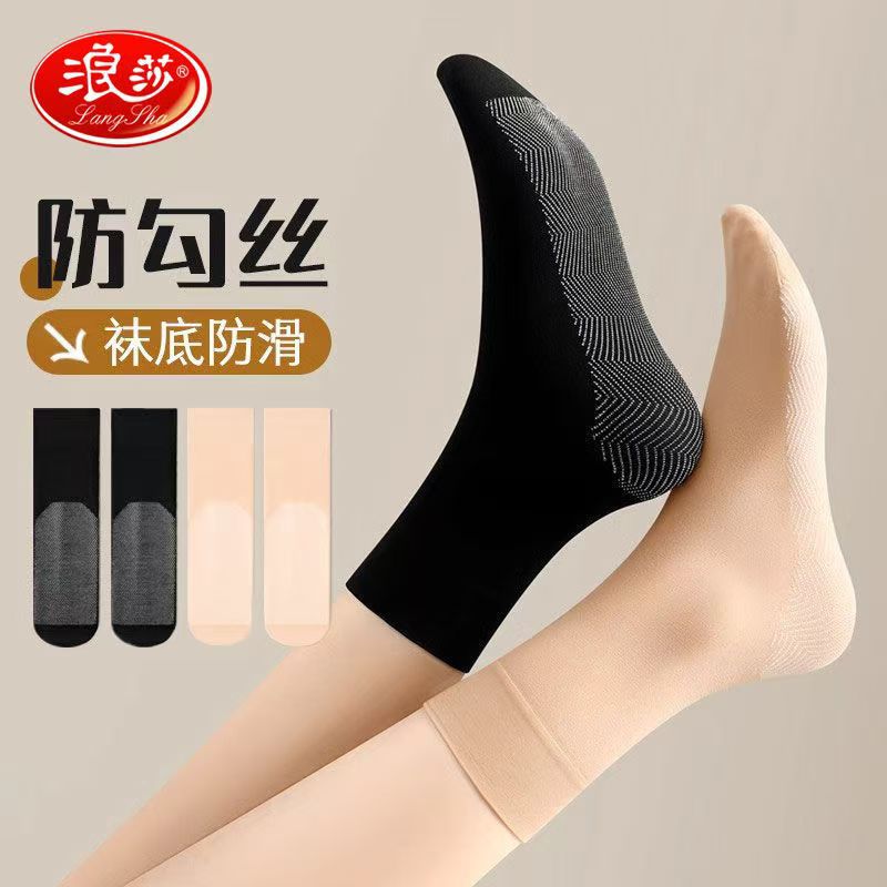 浪莎女袜脚底加棉天鹅绒秋冬加厚女士袜子防滑吸汗亲肤短丝袜厚款