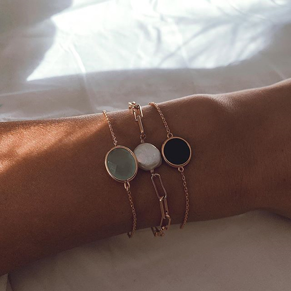 欧米の幾何学の円形は宝石の真珠の多層の女性の合金のブレスレットの3セットのブレスレットのセットのアクセサリーの卸売りを模倣します。