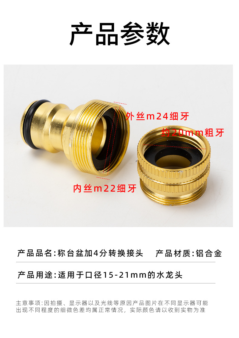洗衣机转接接头铝镀铜水龙头接头奶嘴型台盆接加4分内牙转换接头