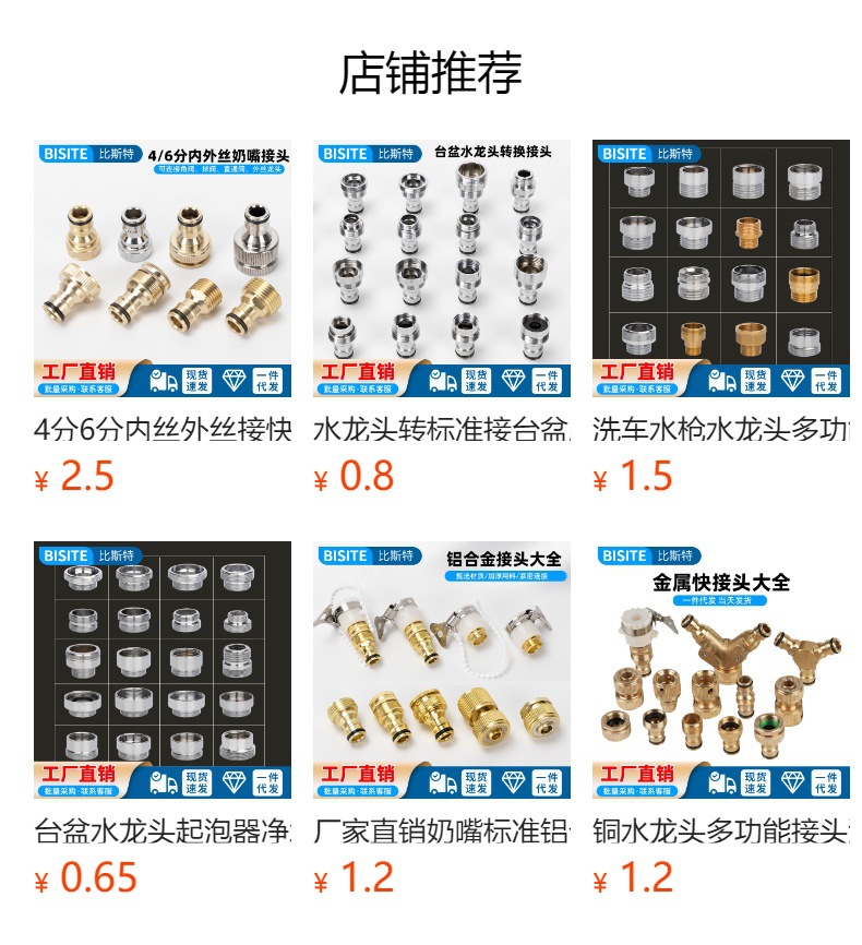 单奶嘴包胶快接直通带开关阀门接头3分4分6分快速通水接软管快接