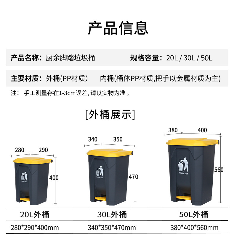 足踏み式ゴミ箱大型商用蓋付き環衛キッチンホテル大容量家庭用足踏み屋外ゴミかご