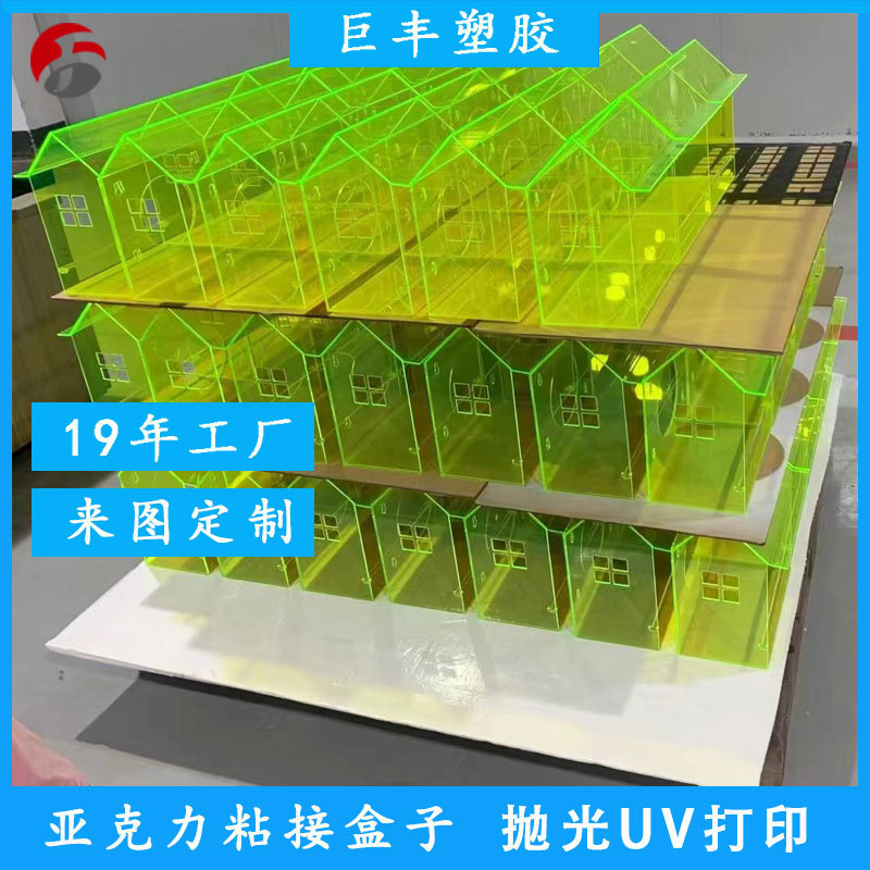 透明アクリル板熱曲げ加工、プレキシガラス板接着加工、レーザー研磨アクリル板UV印刷