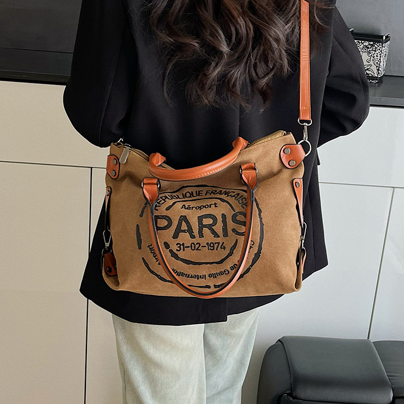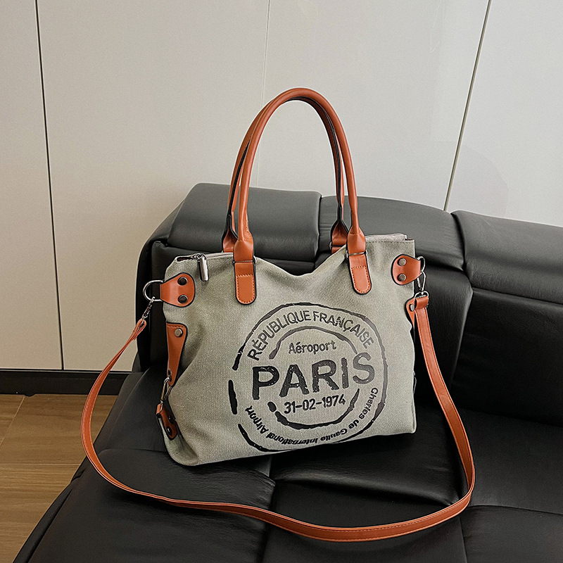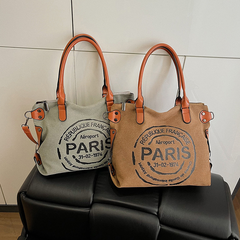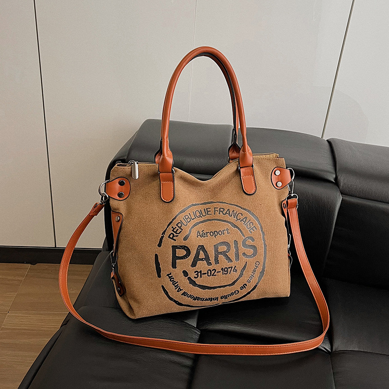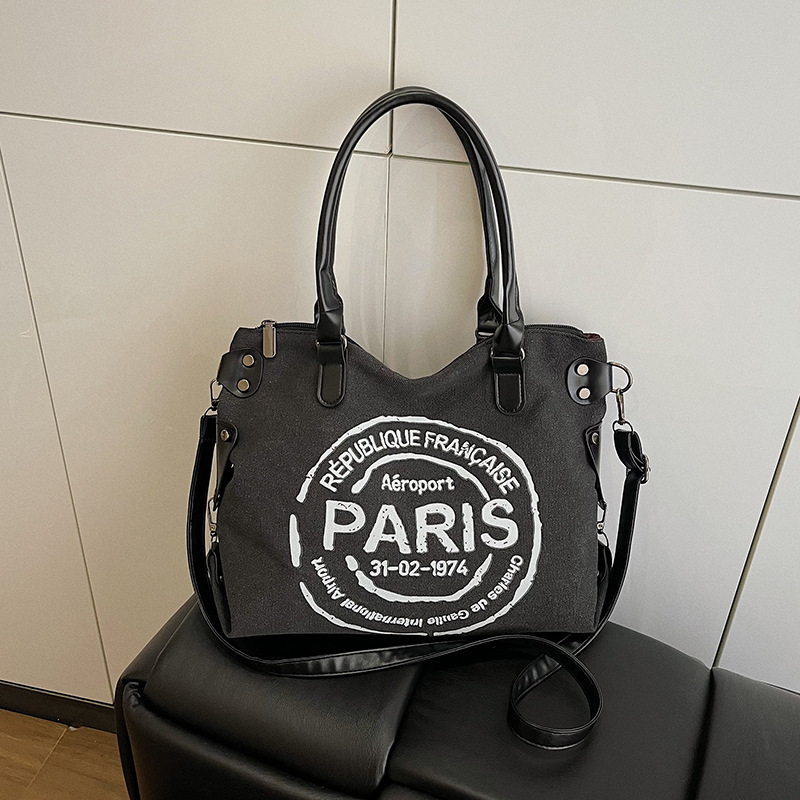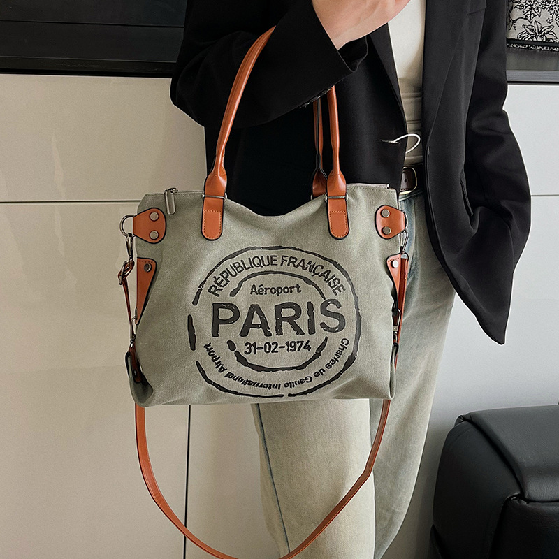 クロスボーダー手提げキャンバス新作ファッション女性カバンアルファベット大容量トートバッグカジュアル通勤ワンショルダー斜めがけ
