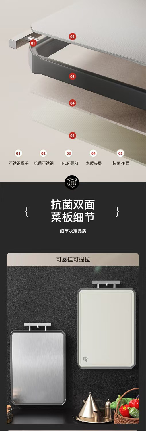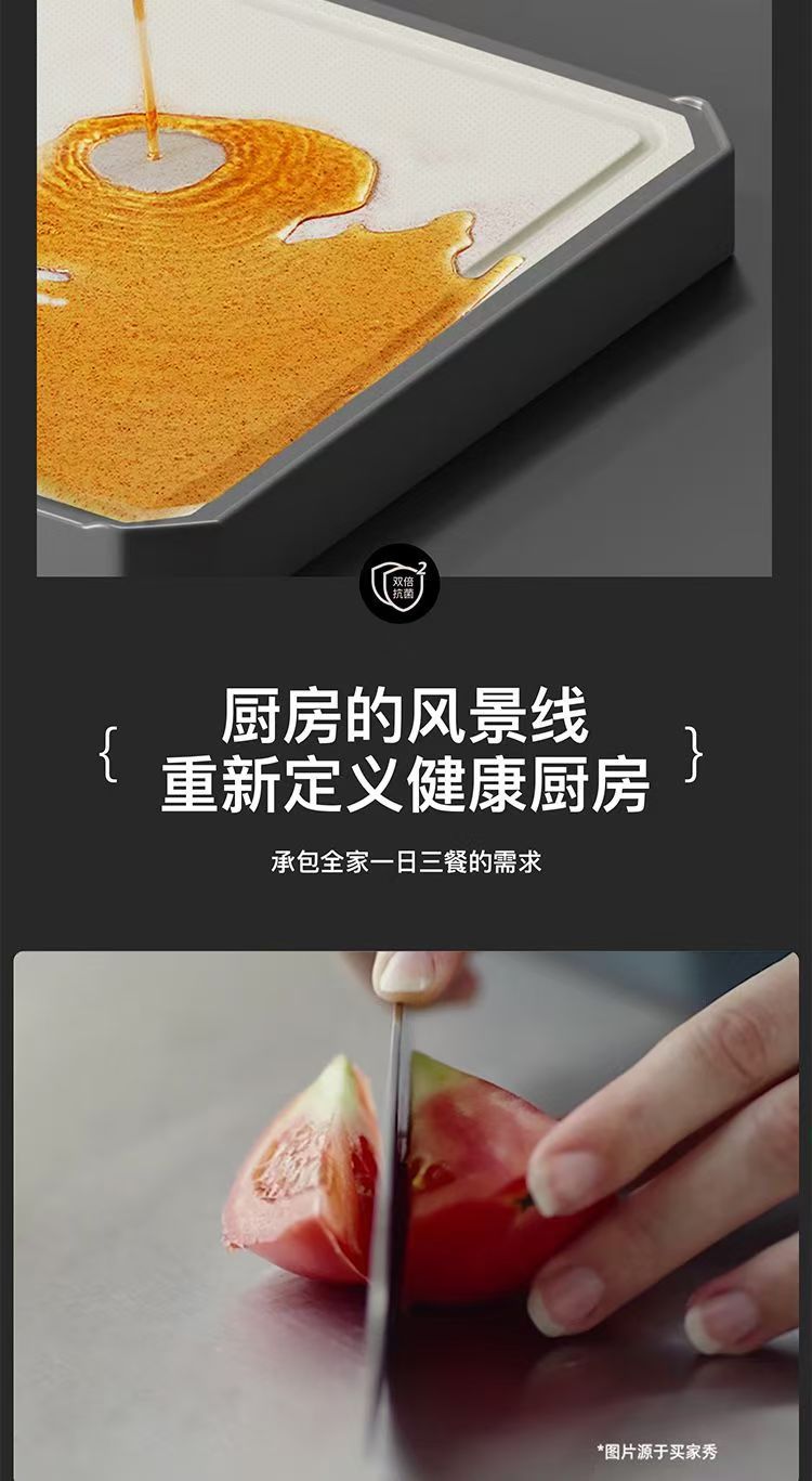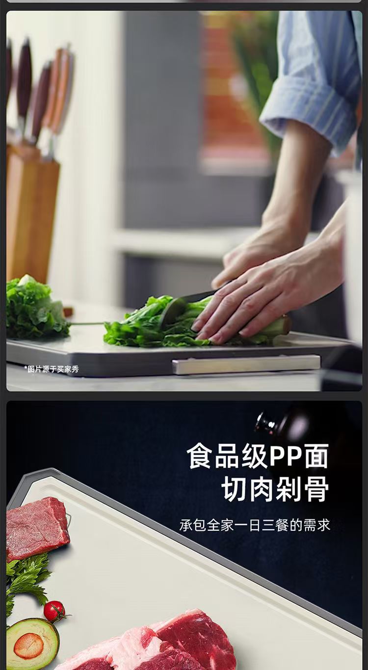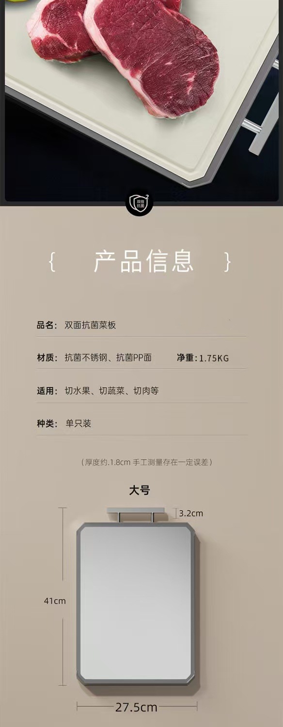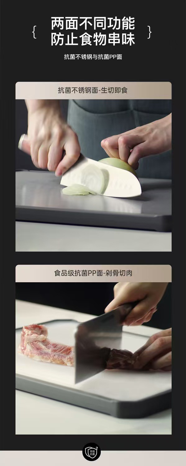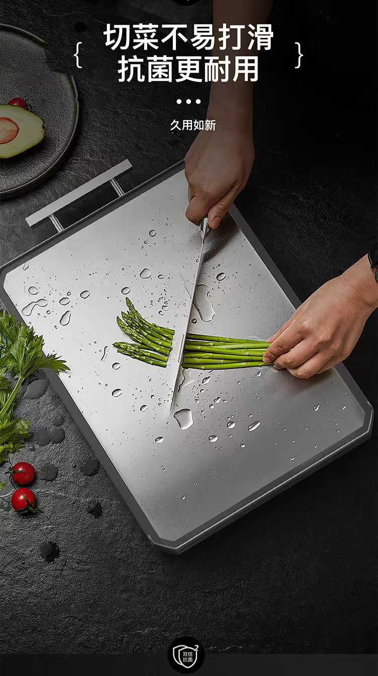 亚马逊爆款不锈钢菜板双面多功能食品级切菜砧板加厚抑菌防霉案板