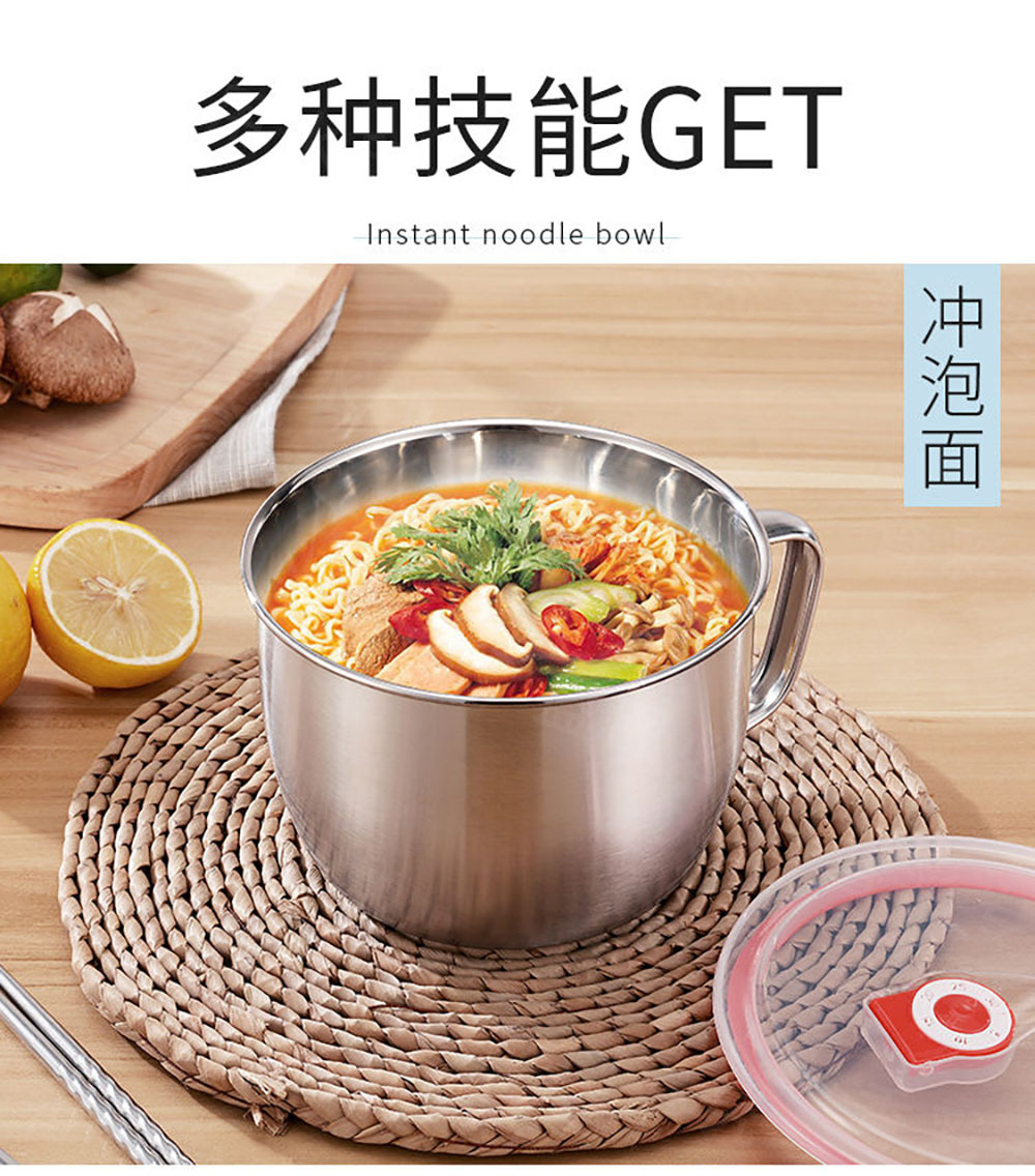 ステンレス製インスタントラーメンボウル蓋付きスープヌードルボウル学生寮弁当箱食堂丼ファーストフードインスタントラーメンカップ
