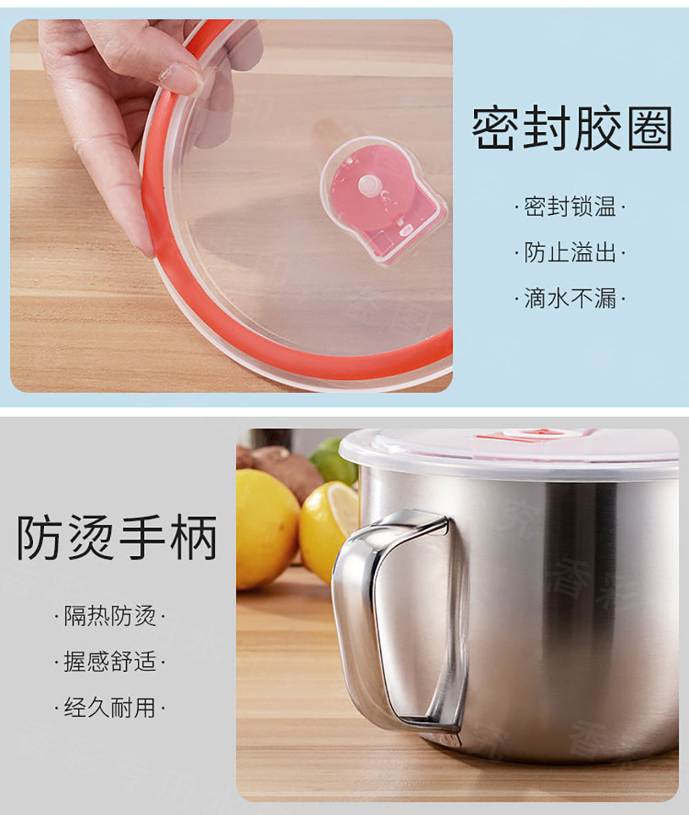 304ステンレスめん茶碗大容量密封茶碗蓋付きハンドルカップラーメンラーメン碗無磁