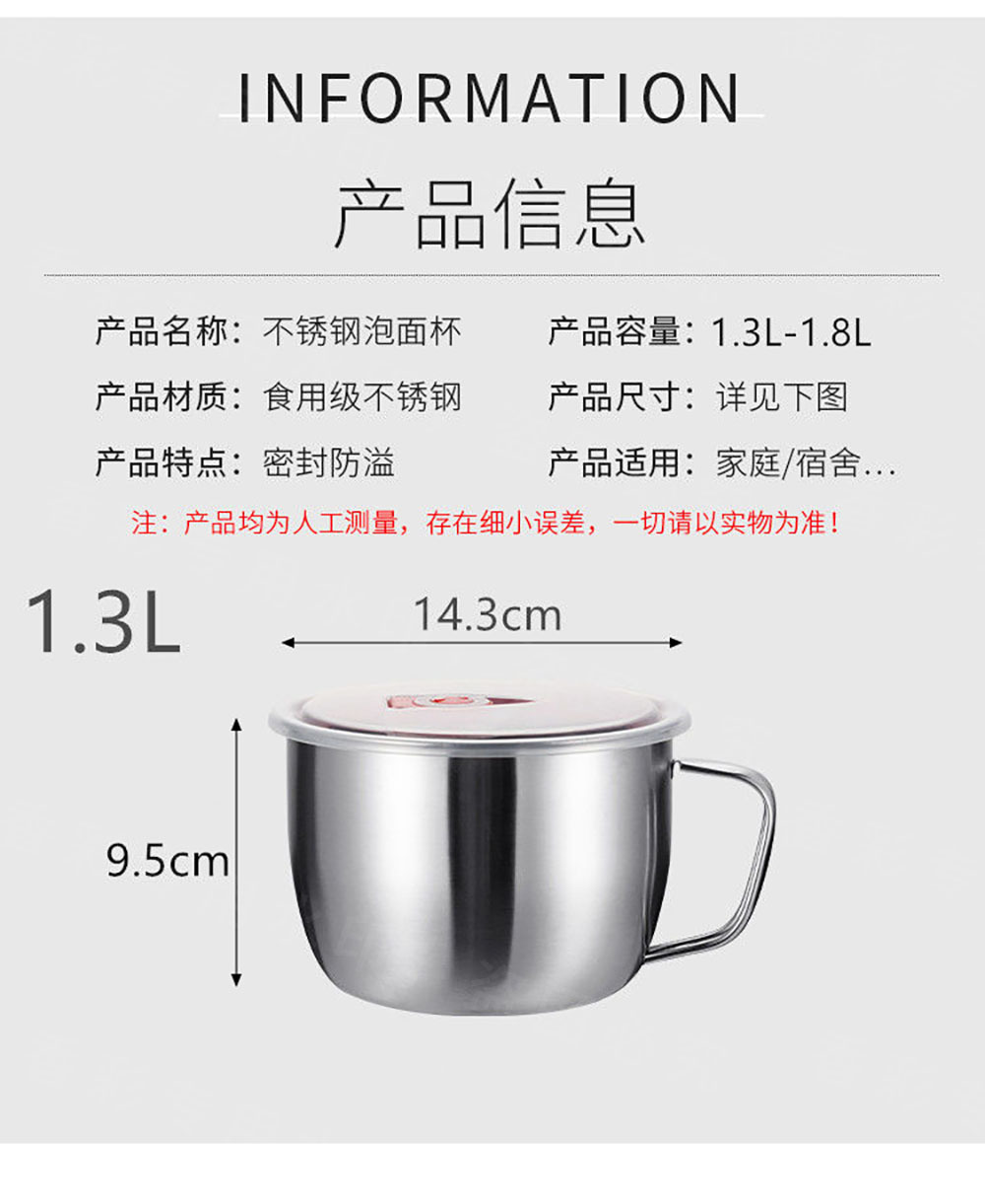 食品级不锈钢泡面碗带盖餐具学生宿舍方便面碗大号防烫大容量