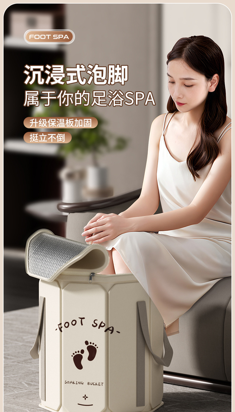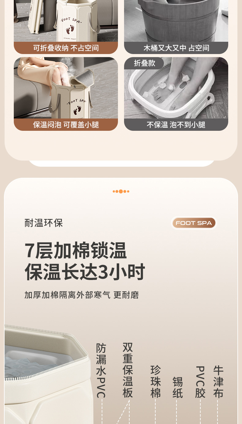 新款便携式可折叠保温足浴桶加高过小腿护膝家用泡脚桶养生洗脚盆