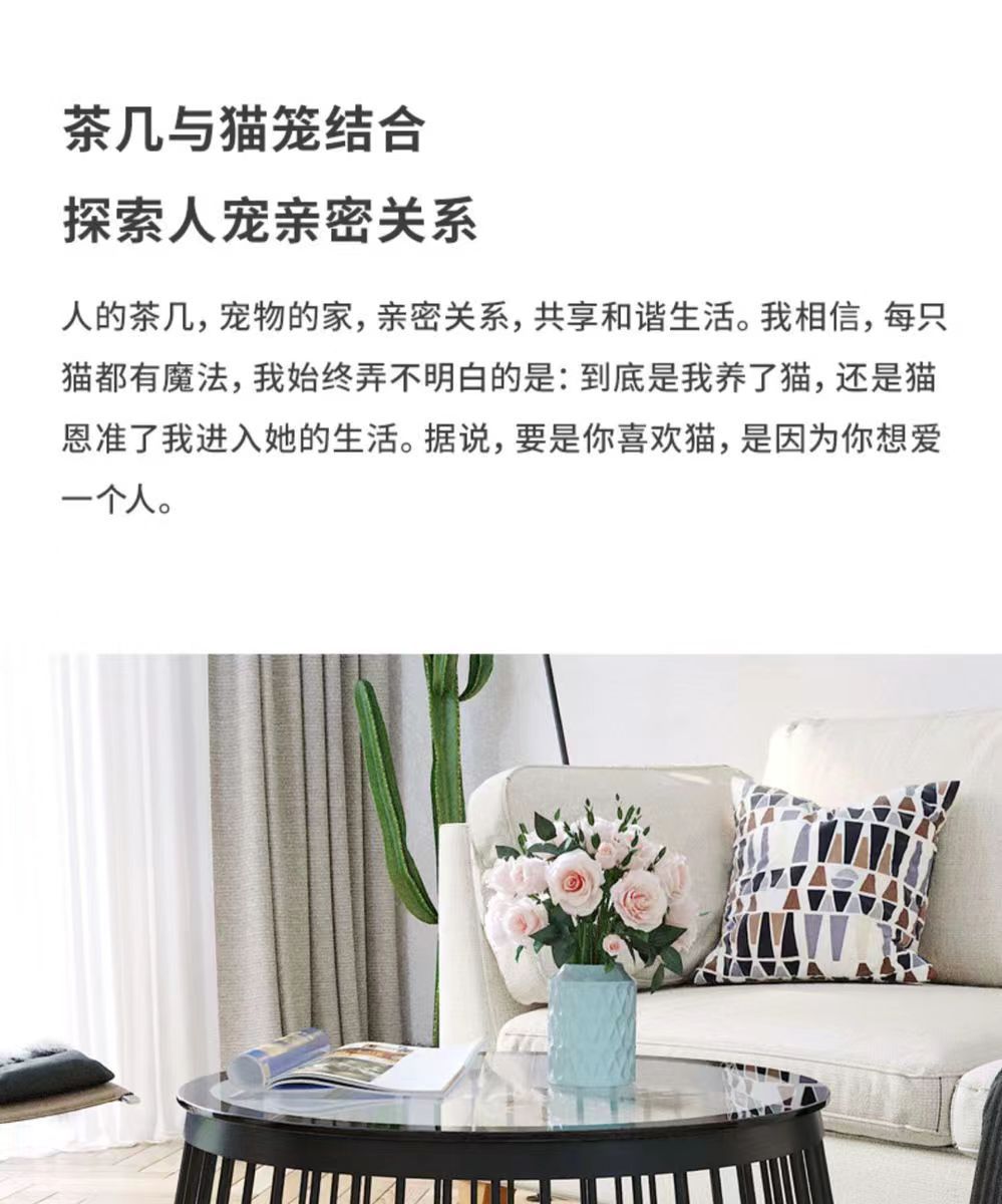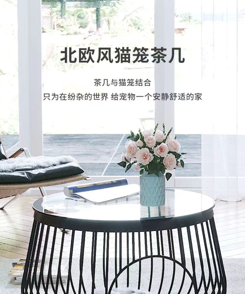 オールインワン猫兼用アイアンコーヒーテーブルリビングルーム小型ペット猫の巣ホームガラスティーテーブルシンプルなバルコニーネットm^
