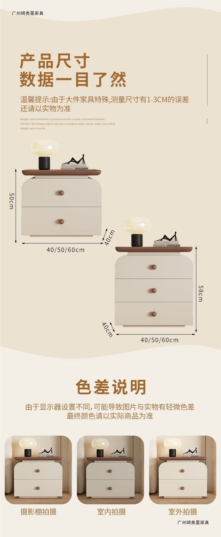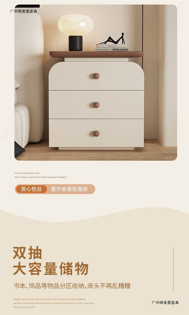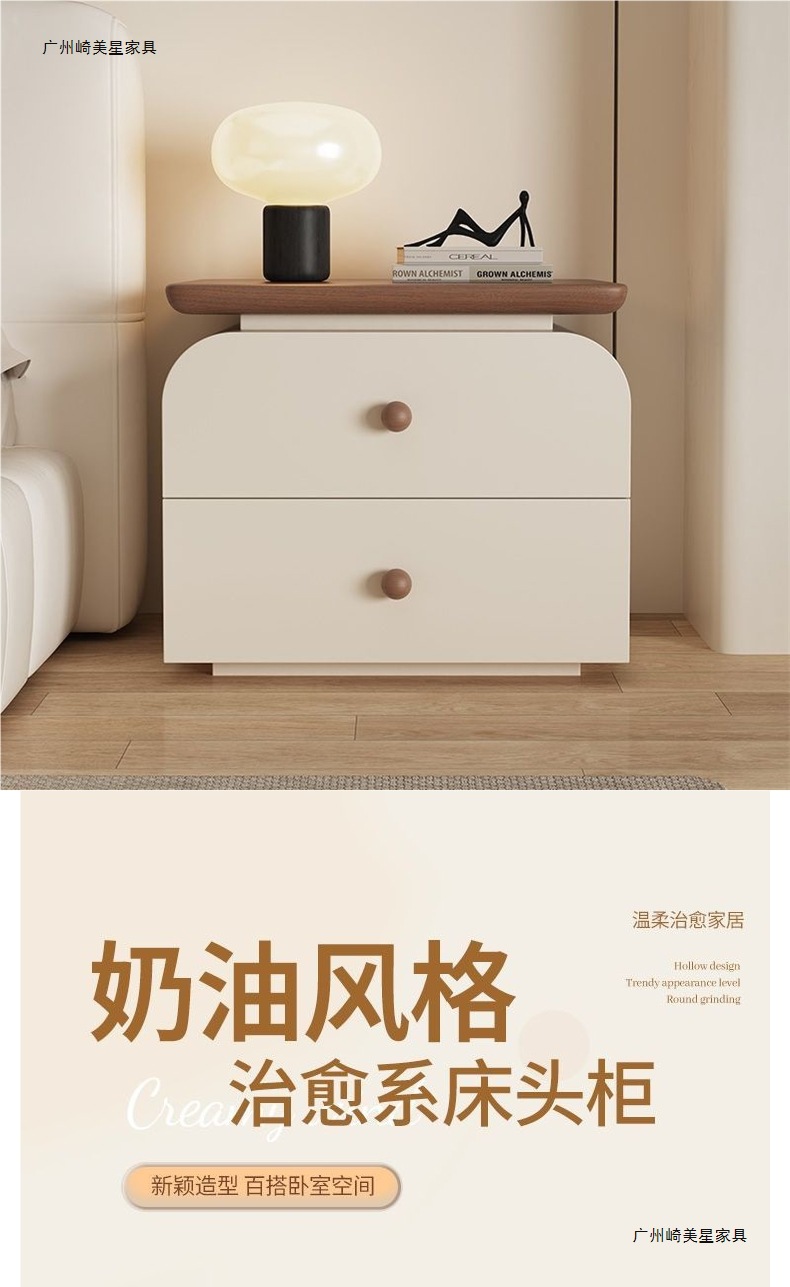 無垢材のベッドサイドキャビネット、中古クリームスタイル、イタリアのミニマリスト、小さなアパート、シンプルでモダンな寝室の収納キャビネット、取り付け不要
