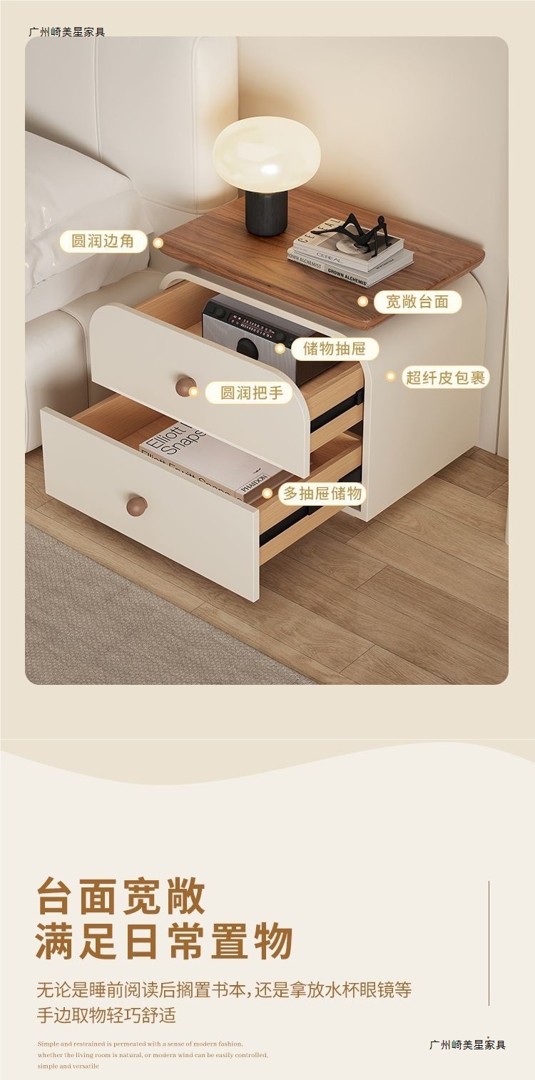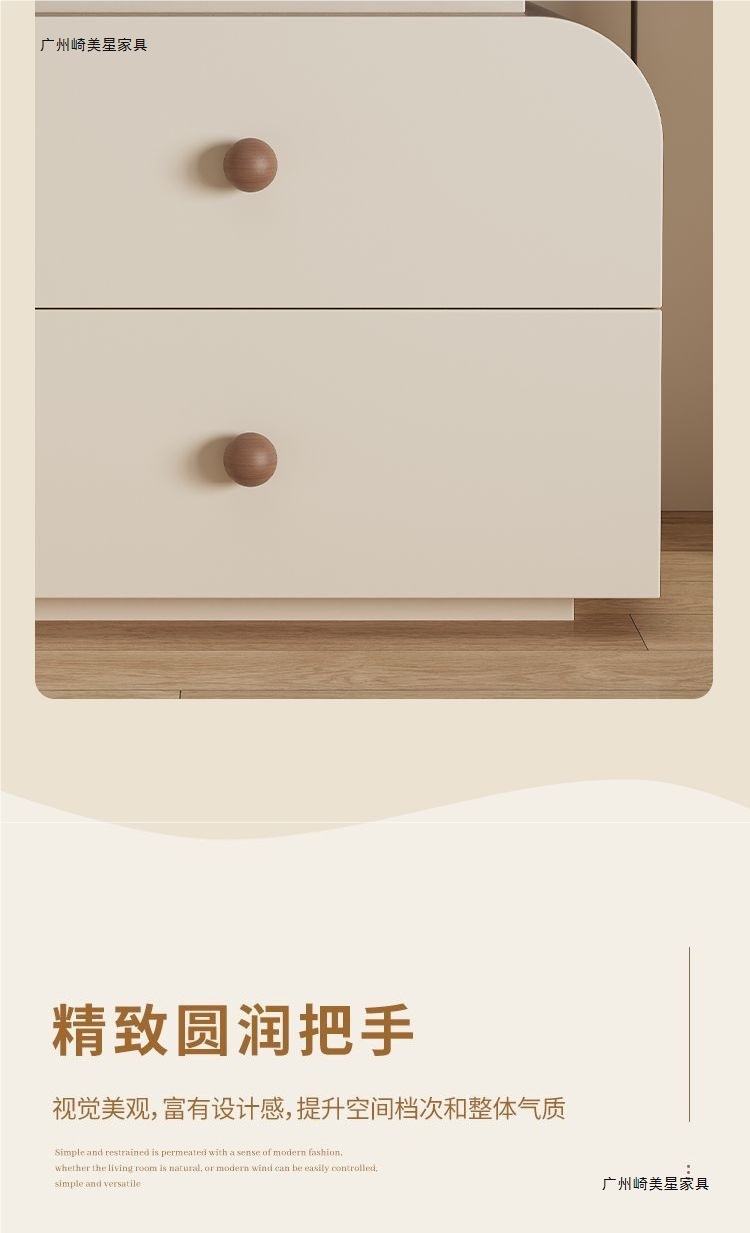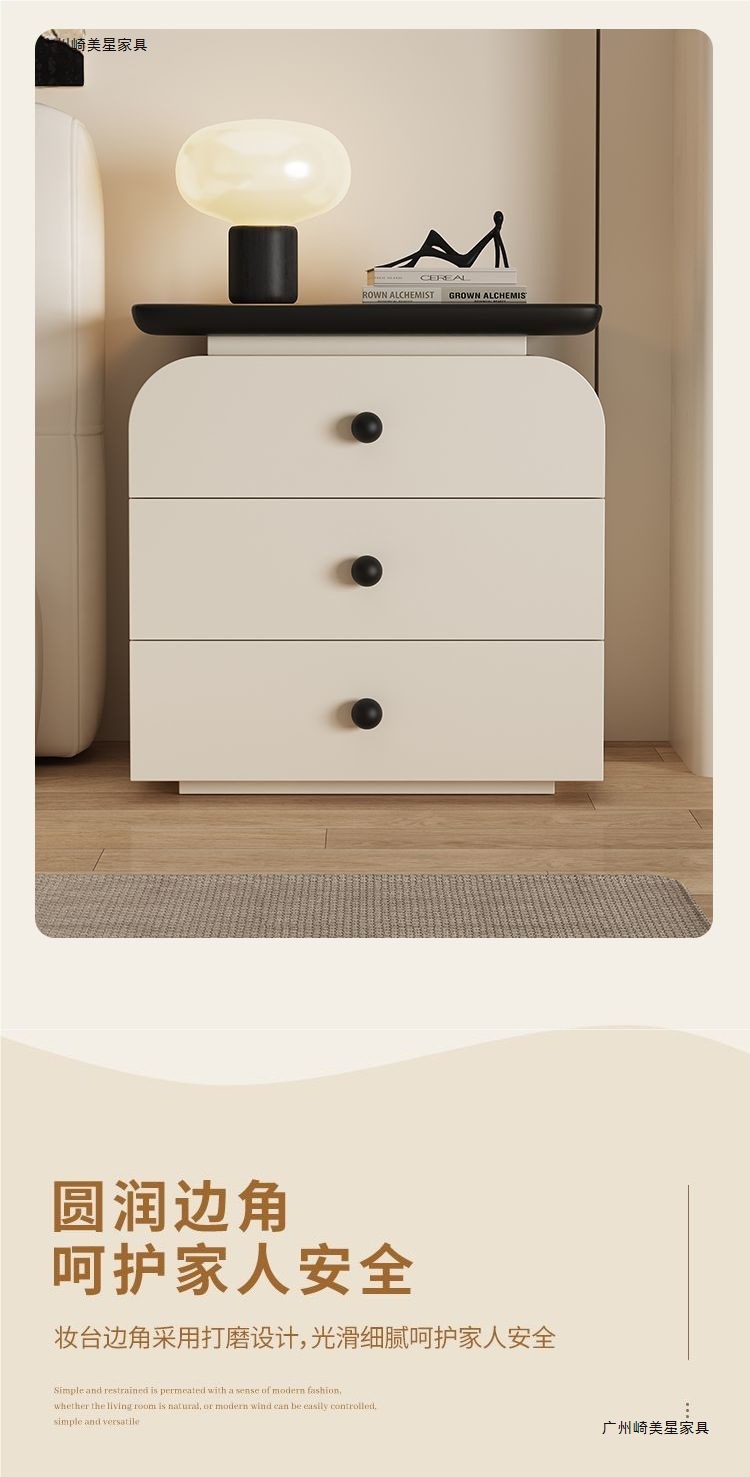 無垢材のベッドサイドキャビネット、中古クリームスタイル、イタリアのミニマリスト、小さなアパート、シンプルでモダンな寝室の収納キャビネット、取り付け不要