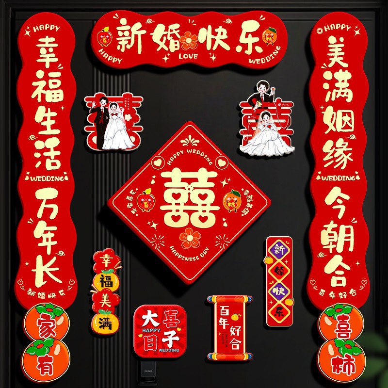 結婚式のドア、女性の結婚式のハッピーワードステッカー、磁気結婚式の対句、新婚男性の完全なセット