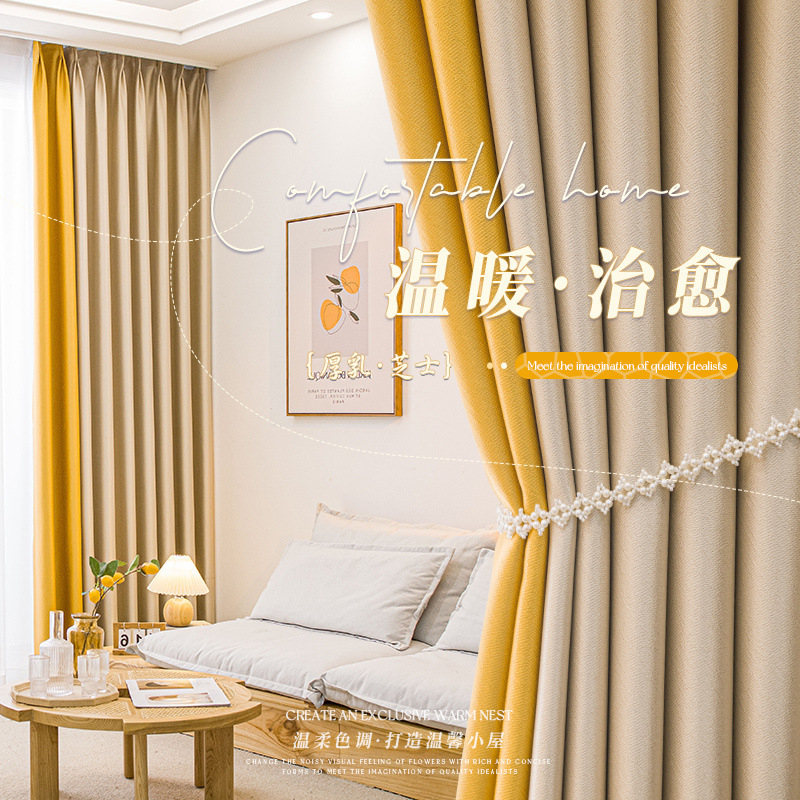 新しい日よけ全遮光カーテン客間寝室日焼け止め断熱シンプルで現代的な単色遮光布北欧