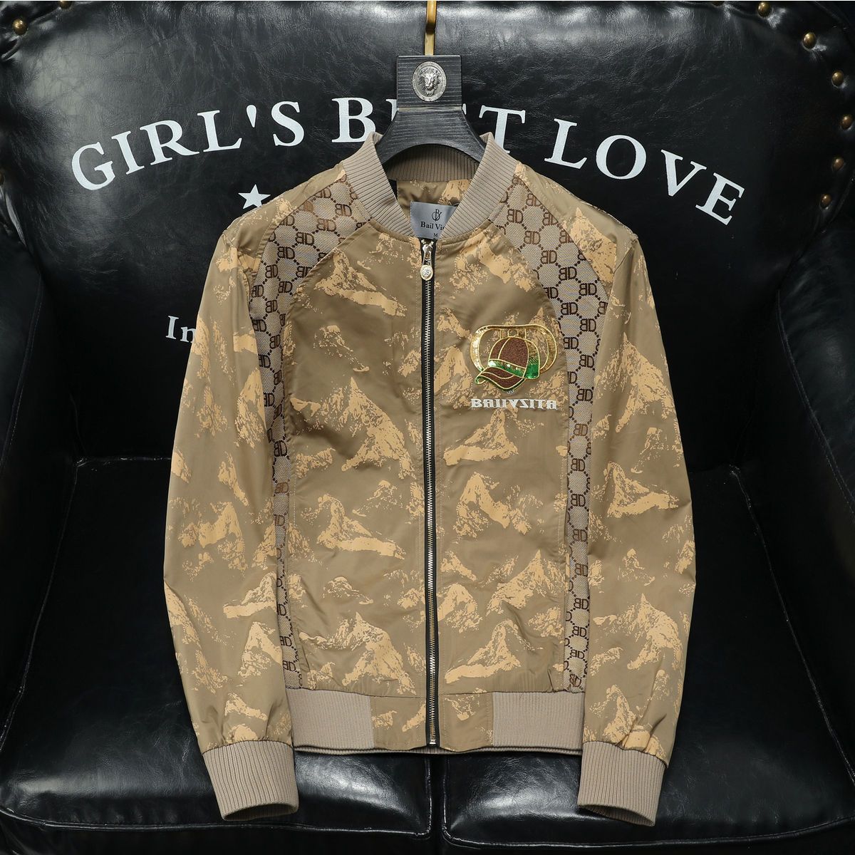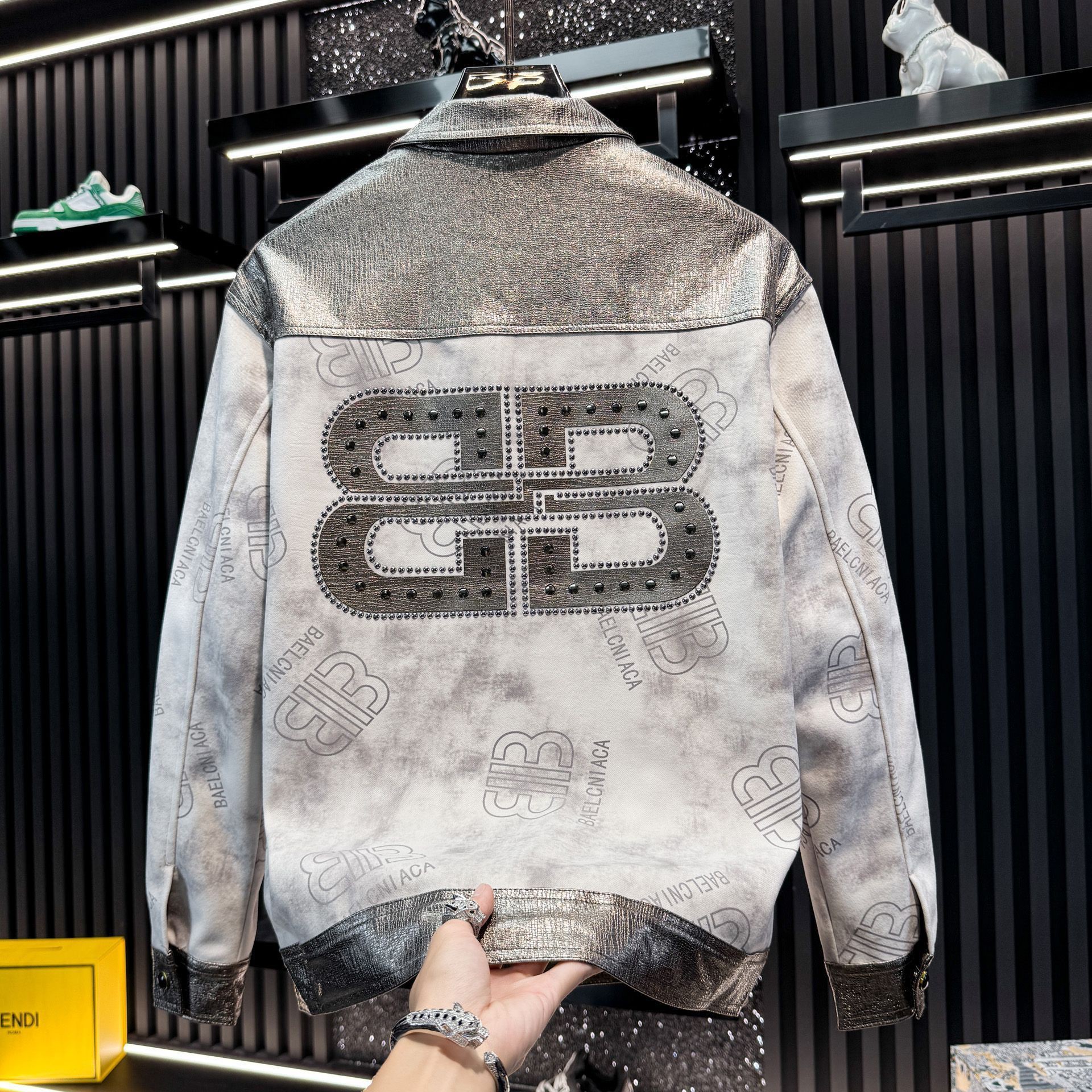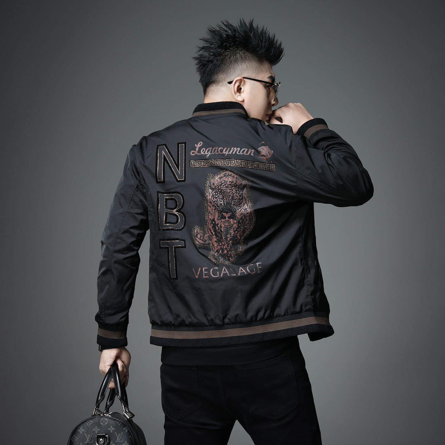 欧货男士高端字母印花钉珠外套2025新款秋季潮牌轻奢休闲男夹克衫