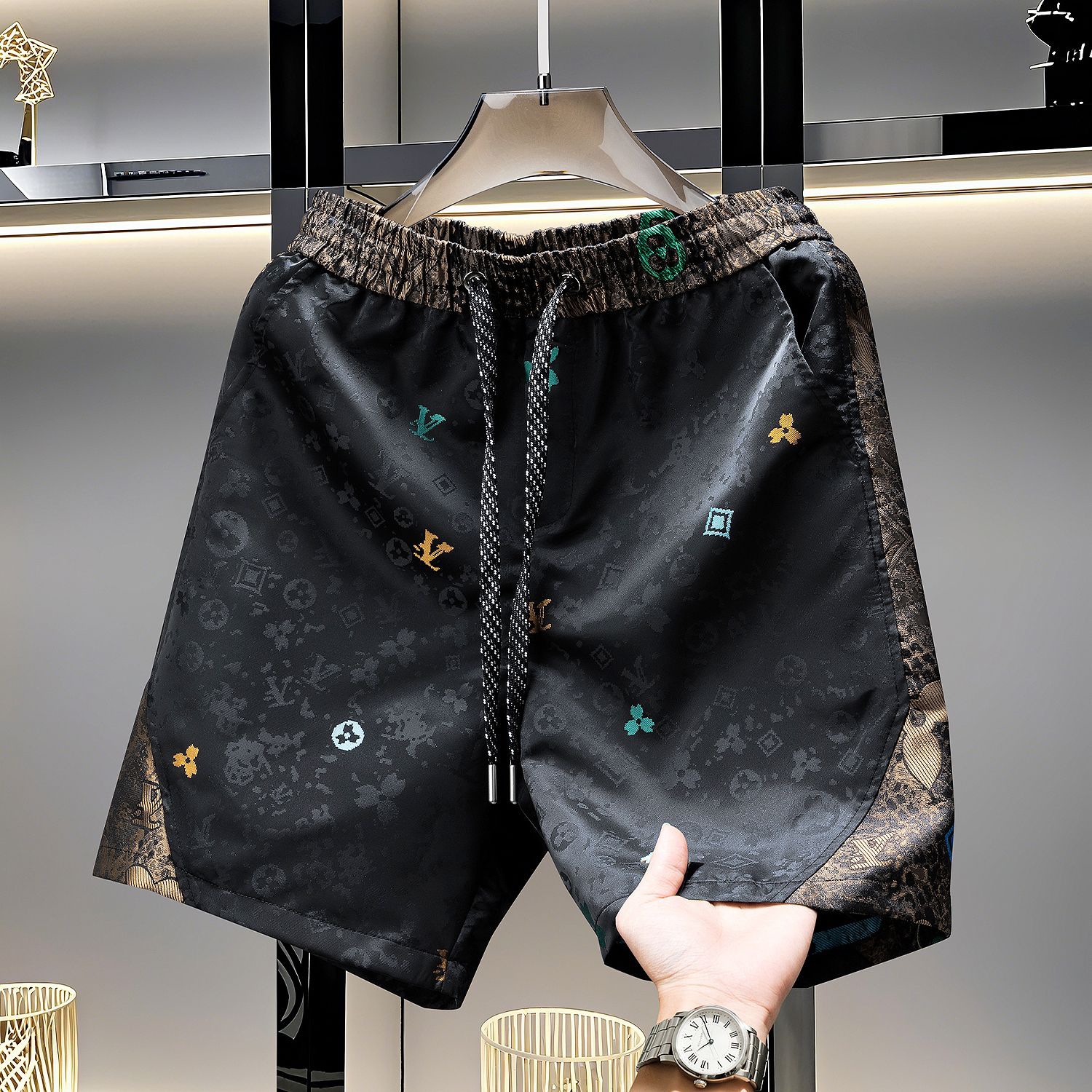 ヨーロッパステーションハイエンド刺繍カジュアルショーツメンズ2025新作夏のトレンディなブランドアウターウェアライト高級ビーチパンツ