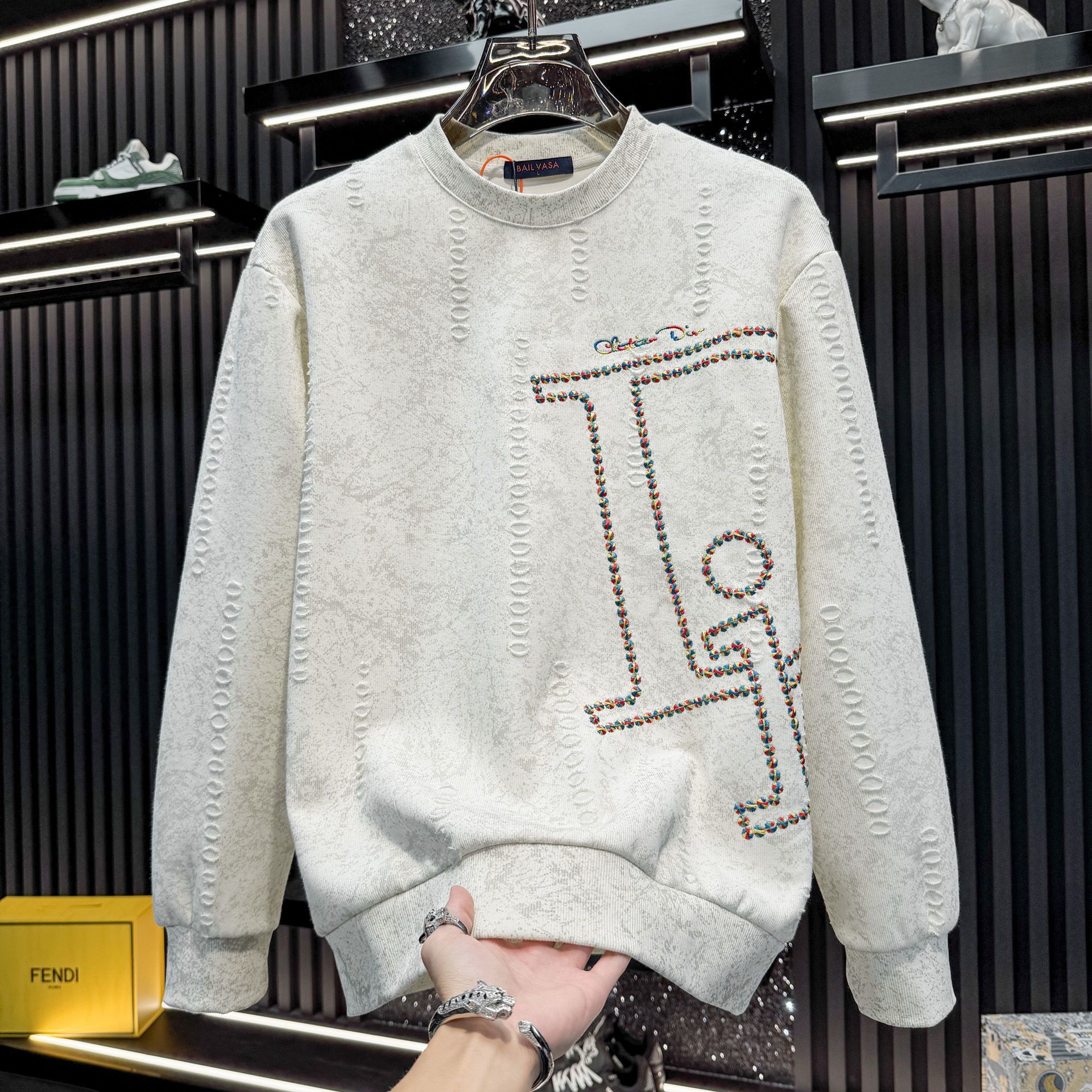 欧货男士高端刺绣破洞圆领卫衣2025新款秋季潮牌轻奢男装长袖上衣